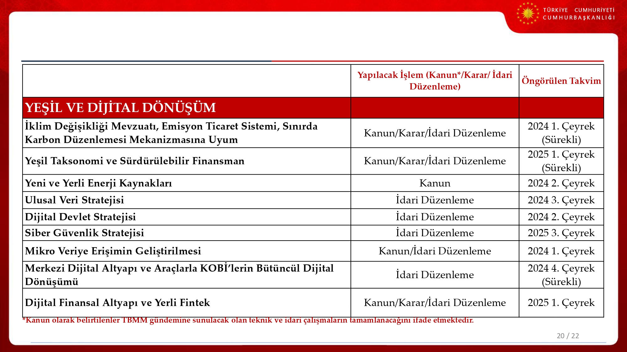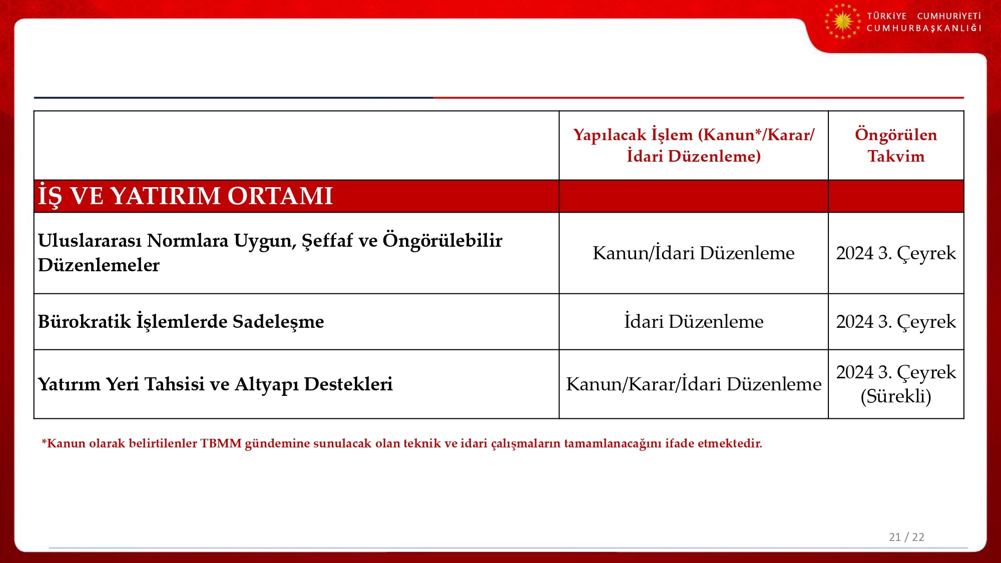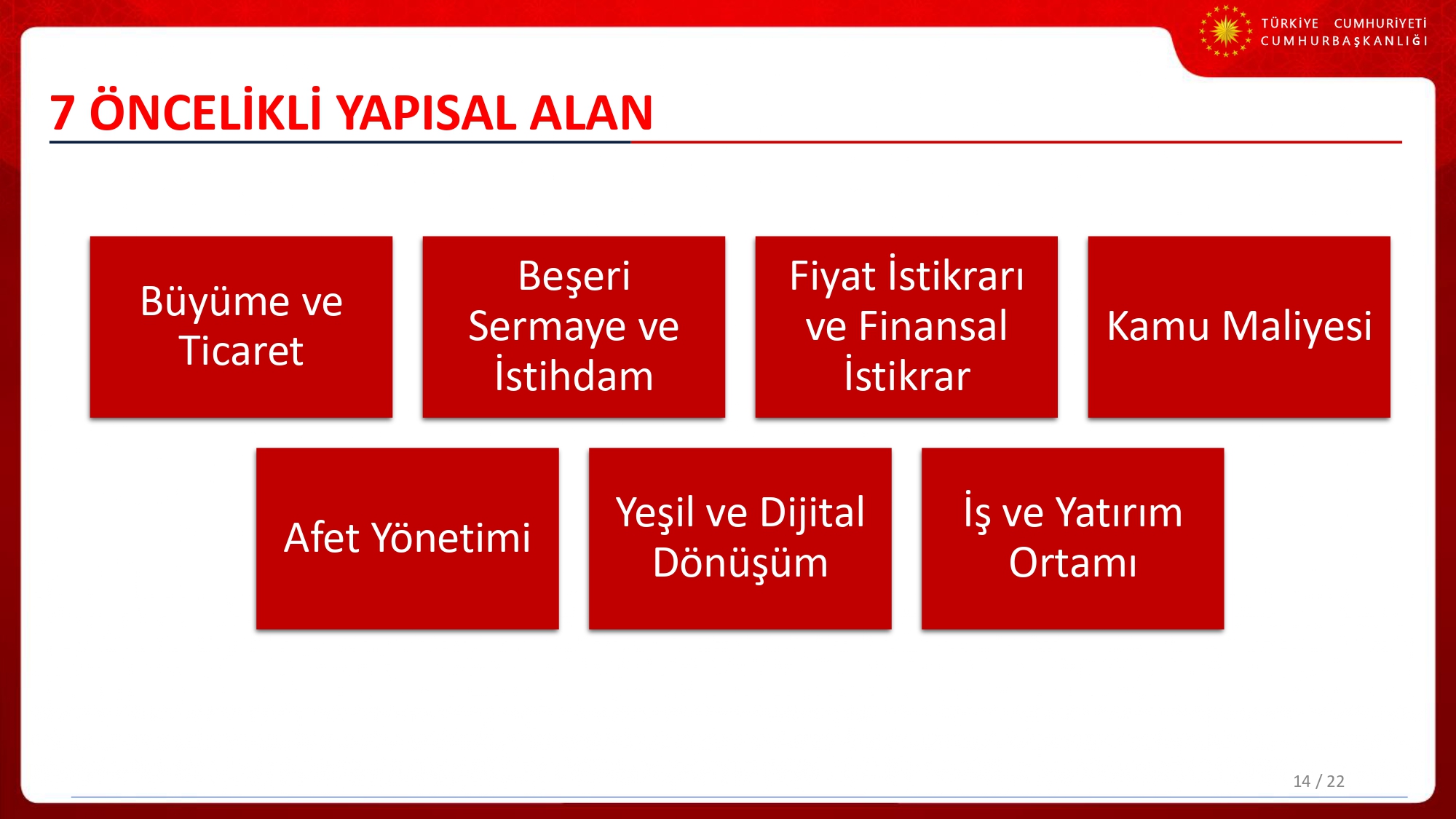 Üçüncü başlığımız yapısal dönüşümler. Önemli bir çerçeveyi oluşturduk orta vadede somut etkiler bekliyoruz. Kısa vadede beklentileri iyileştirmeyi ve beklenti kanalı ile kısa dönemli olumlu etkileri artırmayı hedefliyoruz.
