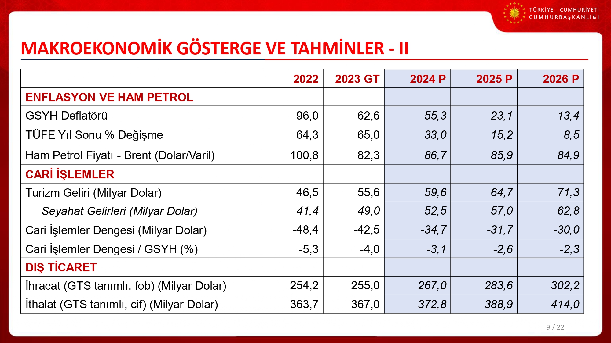 2024-2026 dönemine ilişkin temel amaçlar, makroekonomik hedefler ve politikalar ile öncelikli yapısal alanlar yer almaktadır.