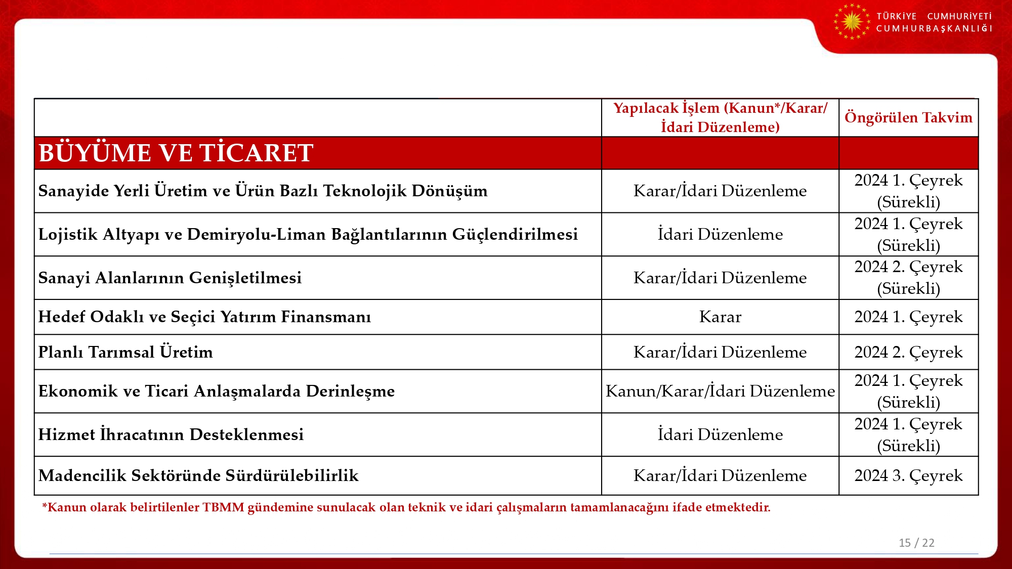 3 yıllık perspektif ile 2024-2026 dönemini kapsayacak olup Cumhurbaşkanı kararı ile resmileşmektedir.