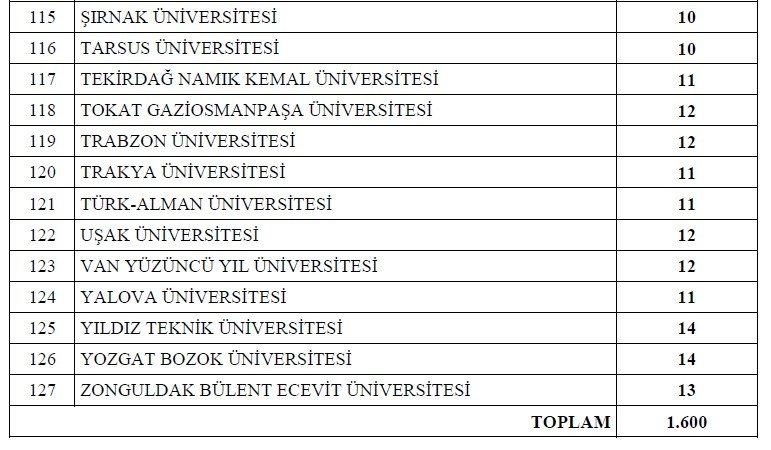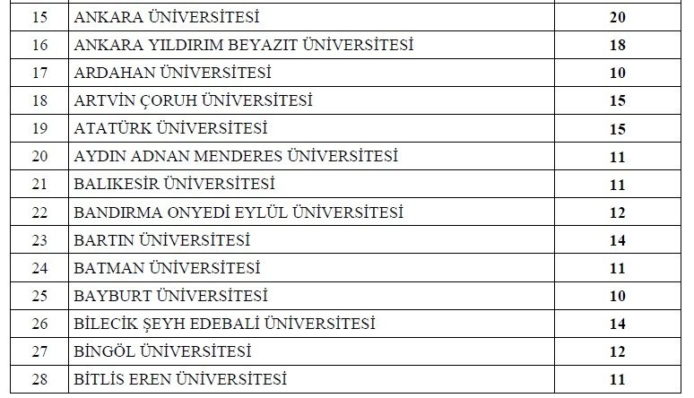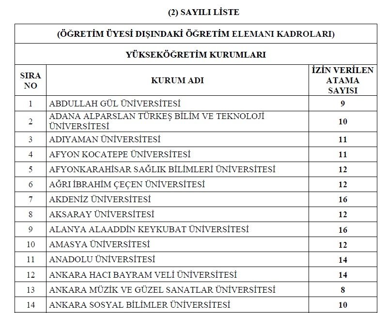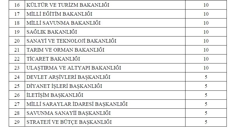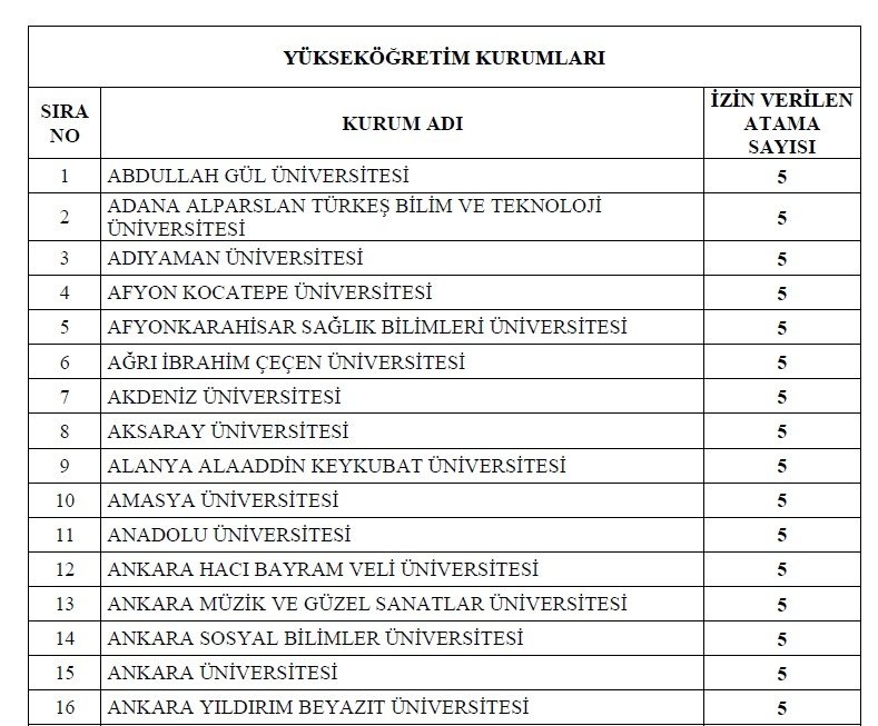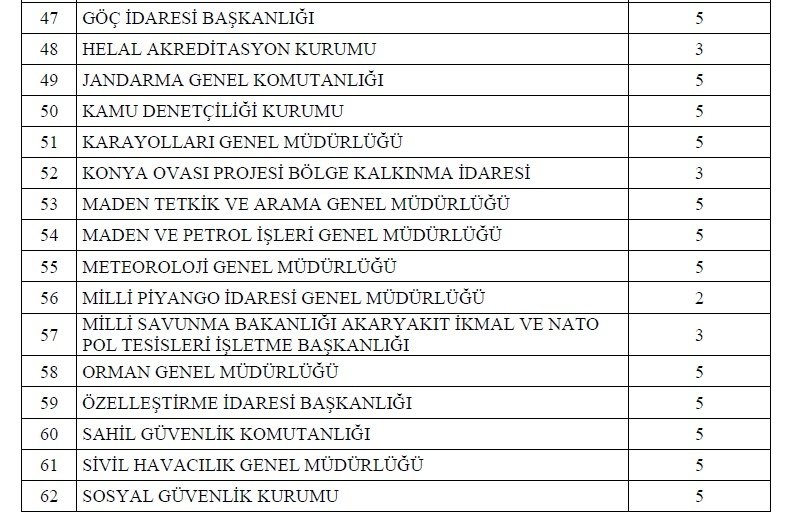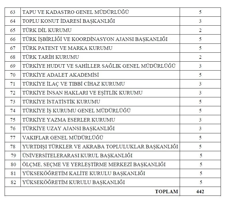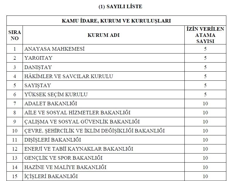 İşte alım yapılacak kurumlar ve kadro sayısı: