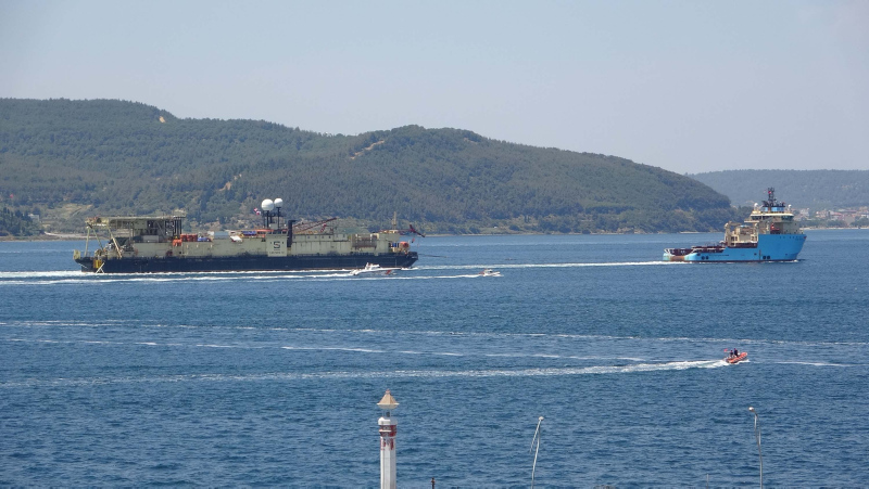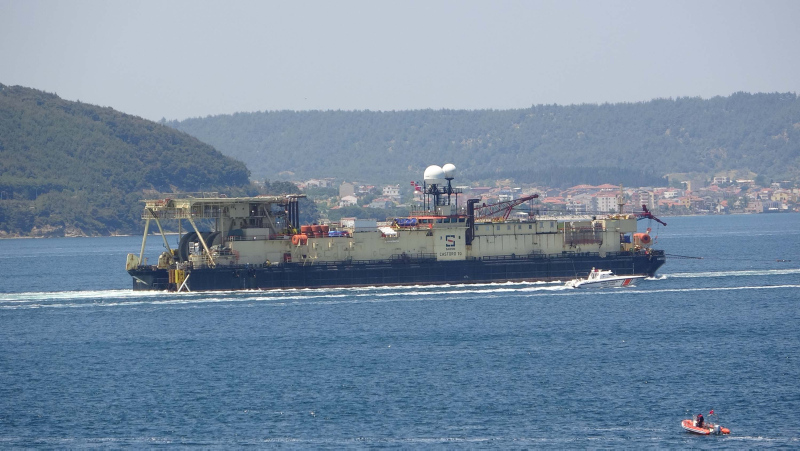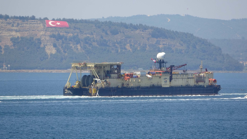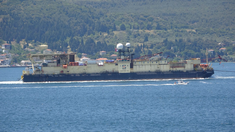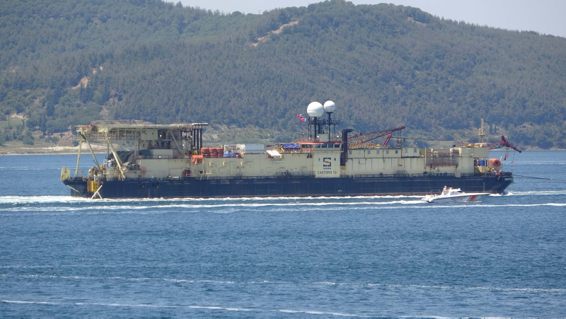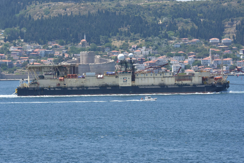 Enerji ve Tabii Kaynaklar Bakanı Fatih Dönmez'in bir süre önce açıkladığı, Karadeniz gazını karaya taşıyacak hat için deniz tabanına boruları yerleştirecek 140 metre uzunluğundaki 'Castoro 10' isimli gemi, Filyos Doğal Gaz İşleme Tesisi'ne gitmek üzere Çanakkale Boğazı'ndan geçti.