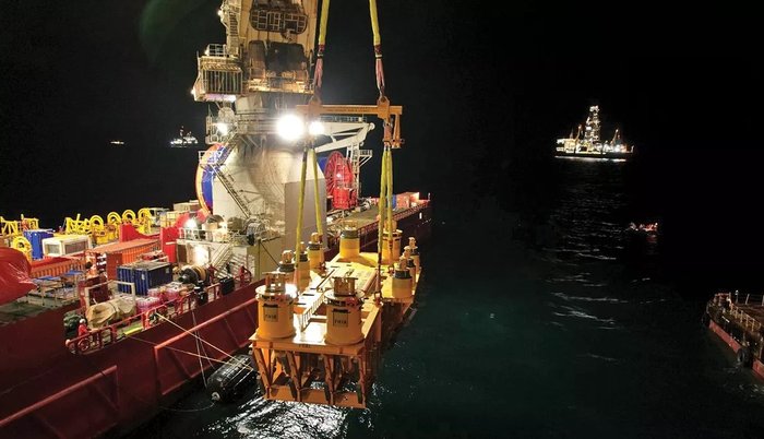 Burada özel vinçler ve su altı robotların yardımıyla deniz tabanına indirilen dev ekipman, yürütülen operasyon sonucu görev yerine yerleştirildi. Gece boyunca devam eden operasyon, yaklaşık 20 saat sürdü.