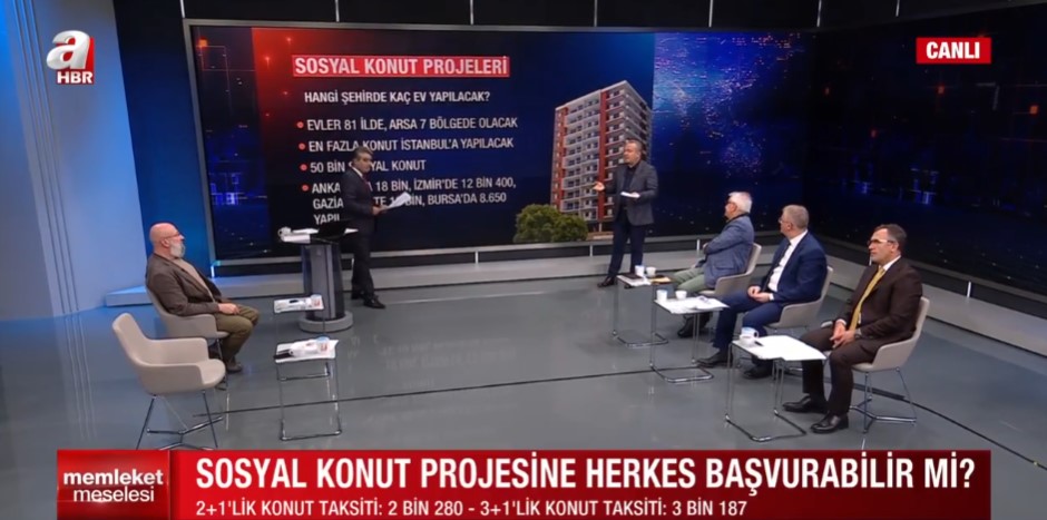 Başkan Recep Tayyip Erdoğan'ın Cumhuriyet tarihinin en büyük sosyal konut projesinin ayrıntılarını duyurmasının ardından konutlara ilişkin birçok detay merak konusu olmuştu. A Haber canlı yayınında değerlendirmelerde bulunan uzmanlar, tüm merak edilen sorulara yanıt aradı. Ekonomist - Akademisyen Prof. Dr. İbrahim Güran Yumuşak, konut maliyetlerinin yüzde 40'ının devlet tarafından sübvanse edileceğini ifade etti. Konut sahibi olmaya hak kazanan vatandaşların yüzde 10 peşinat ödeyeceğini ifade eden Yumuşak, "Yarından itibaren varlıklarını arsa ev gibi varlıklarını devredenler de tespit edilip projeye müracaat etmeleri engellenecek." diye konuştu. Peki, hangi ilçelerde ne kadar konut yapılacak? Kimler nasıl başvuracak, evler ne zaman teslim edilecek? İşte detaylar...