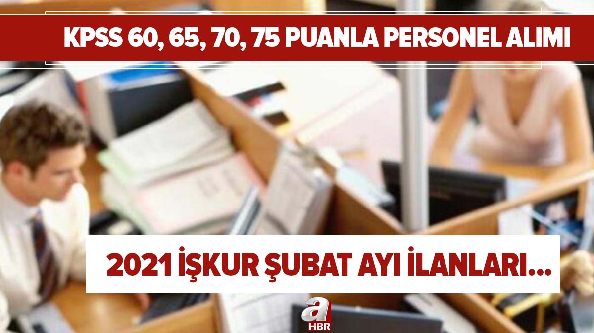 Şubat ayında memur ve personel alımları devam ediyor. Pandemi döneminde İŞKUR tarafından yayınlanan iş ilanları yakından takip ediliyor. KPSS şartsız ve KPSS 60, 65, 70, 75 puanla personel alımları için başvuru şartları ve tarihleri kurumlar tarafından açıklanıyor. ahaber.com.tr olarak güncel iş ilanlarını haberimizde derledik. İşte, 2021 Şubat ayı ilanları ve alım şartları...