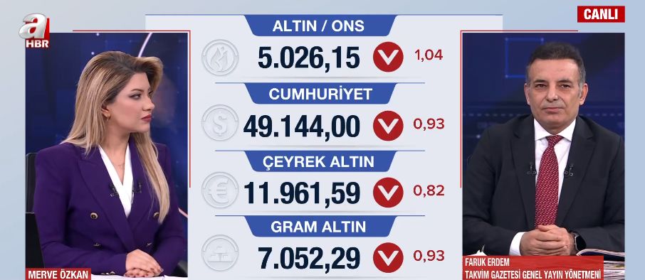 Takvim Gazetesi Genel Yayın Yönetmeni Faruk Erdem, A Haber canlı yayınında piyasalardaki son durumu ve küresel güçlerin altın üzerindeki stratejilerini değerlendirdi. Erdem, yatırımcıları kısa vadeli dalgalanmalara karşı uyarırken, 2026 yılı için çarpıcı rakamlar verdi.