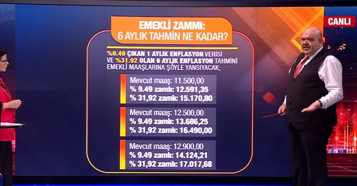 %9.49 çıkan 1 aylık enflasyon verisi ve %31.92 olan 6 aylık enflasyon tahmini emekli maaşlarına şöyle yansıyacak;