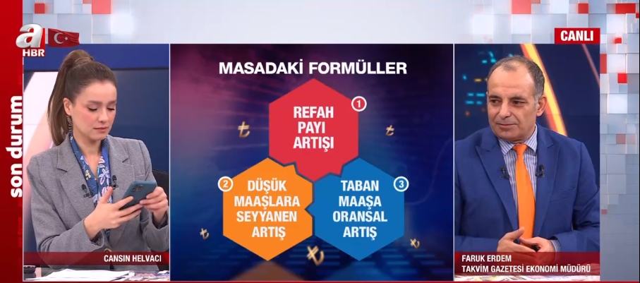 Taban maaşın arttırılması söz konusu. Orada yüzde 50'lilik bir artış olduğunda 11 bin 250 TL'ye kadar çıkıyor. Öncelikle refah payının gelmesi gerekiyor. Zam eşitli sağlanması söz konusu olacak. Bunun yanında bir kök maaşlar var. 7 bin 500 TL'nin altındaki maaşlar var. 5 bin TL maaş alan birine yüzde 37,57 zammı eklerseniz hiç zam almamış gibi olacak. Kök aylıklara da seyyanen bir artışın söz konusu. Bu 3 formül çalışılıyor.
