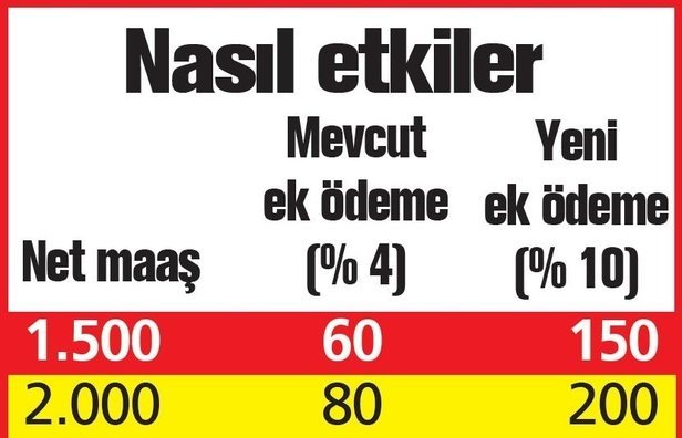 Emekliler maaşlarının yüzde 4'ü yerine yüzde 10'u oranında ek ödeme almaya başlayacak. SSK ve Bağ-Kur emeklilerinin gelirinde 361 liraya varan artış yaşanacak. 6 bin 28 lira olan en yüksek maaşı alan emekliye 241,15 lira yerine 602,87 lira ek ödeme verilecek.