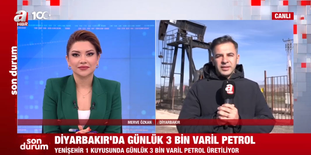 Diyarbakır'da bir yandan petrol araması çalışması yapılıyor bir yandan da faaliyete alınan kuyularda üretim yapılıyor. A Haber muhabiri Sinan Yılmaz o noktadan ayrıntıları aktardı. Öte yandan TPAO'nun 'X' hesabından yapılan açıklamada, Cudi-Gabar Dağı bölgesinde yeni saha arama çalışmalarının sürdüğü belirtilerek, 'Farklı lokasyondaki yeni bir yapıyı test etmek üzere Kapanlı-1 sondajına bugün başlıyoruz.' denildi.