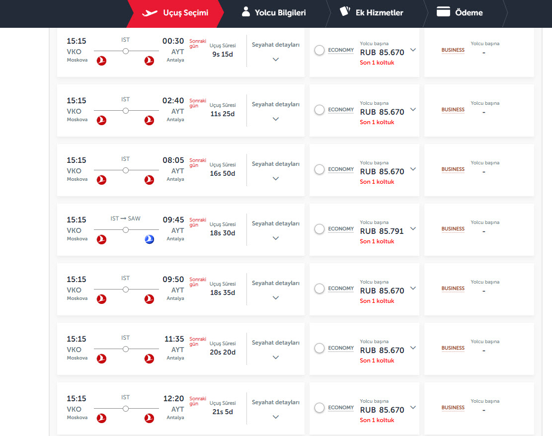 Bilet fiyatlarının yoğun talebe bağlı ciddi arttığını aktaran tur operatörü firmaları yetkilileri, Türk Hava Yolları'na ait uçuşlarda Antalya'ya tek gidiş bilet fiyatının 70 bin TL'yi bulduğunu, birçok uçuş firmasında da 40-50 bin TL bandında olduğunu, ancak yer bulmanın neredeyse imkansız olduğunu kaydetti.