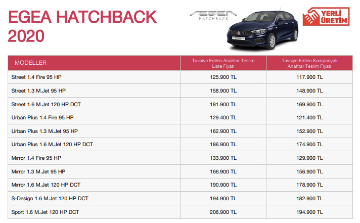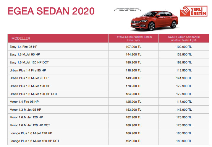 Fiat Egea Sedan modelinin çok satması nedeniyle müşterilerine fırsat oluşturmayı amaçladı. Kampanyalı sıfır fiyatlarıyla Fiat yetkili bayilerinde müşterilerini bekliyor.