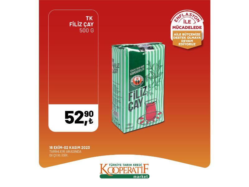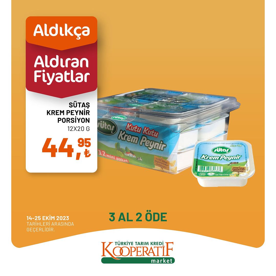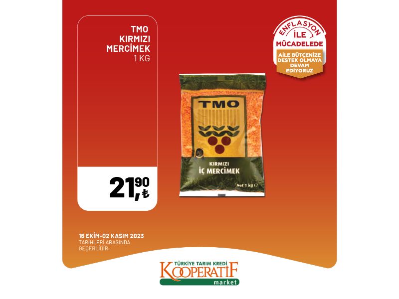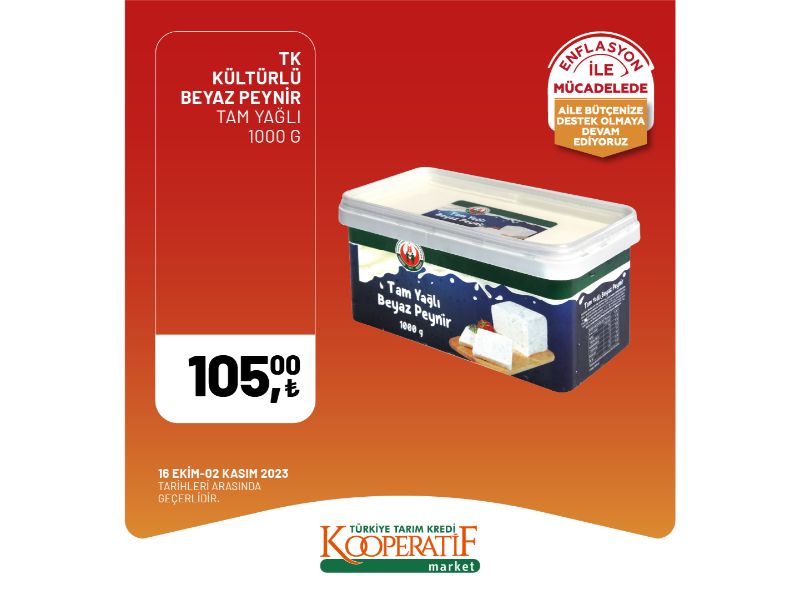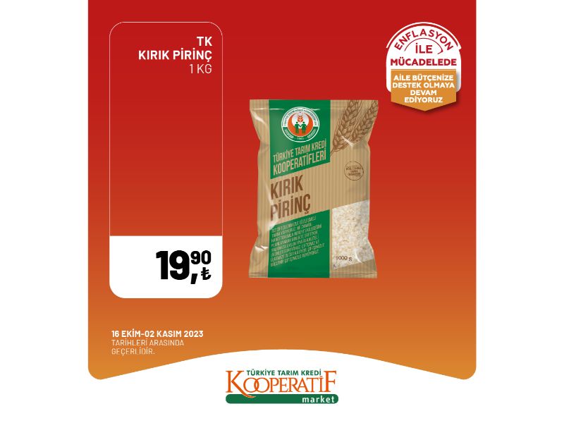 Tarım Kredi Market ekim ayı indirim kataloğunda yer alan ürünlerin listesi ve fiyatları belli oldu. Başkan Recep Tayyip Erdoğan tarafından yapılan enflasyonla mücadele çağrısına kulak veren zincir market bu ayın ikinci kataloğunda efsane indirimlerle müşterilerinin karşısına çıkmaya hazırlanıyor. 2 Kasım tarihine kadar devam edecek indirim kataloğunda Kuru Soğan 5,90 TL, Limon 11,75 TL, Salatalık 12,50 TL, Elma 19,90 TL, Yerli Muz 29,90 TL, kıyma 400gr 34,90 TL'den, çamaşır deterjanı 115,90 TL'den, 40'lı tuvalet kağıdı 159,90 TL'den, bütün tavuk 56,90 TL'den, çay 89,90 TL'den, 5lt su 11,90 TL, kaşar peynir 159,90 TL'den, Tereyağı 179,90 TL'den, süt 18,50 TL'den, beyaz peynir 105,00 TL'den satışa sunuluyor. İşte TK haftanın indirimli ürünleri tam liste fiyatları….