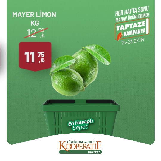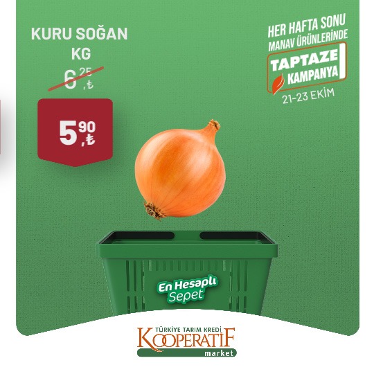 Tarım Kredi Market 25 Ekim indirim kataloğu! 3 al 2 öde günleri! Kuru Soğan 5,90 TL, Limon 11,75 TL, Salatalık 12,50 TL, Elma 19,90 TL, Yerli Muz 29,90 TL'den satışa başladı
