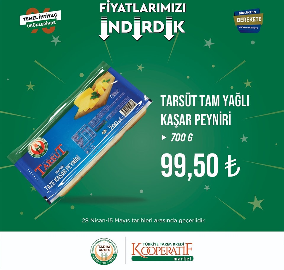 Tarım Kredi Market indirimleri başladı. Mayıs ayı kampanyalı ürün kataloğu yayımlanırken listeledi ürünler göz doldur. Neredeyse indirimsiz bir şey kalmazken vatandaşlar da ihtiyaçlarına göre Tarım Kredi Market indirim kataloğunu incelemeye başladı. İşte indirim listesi: Sucuk, tereyağı, peynir, et, şeker, çay, tuvalet kağıdı...