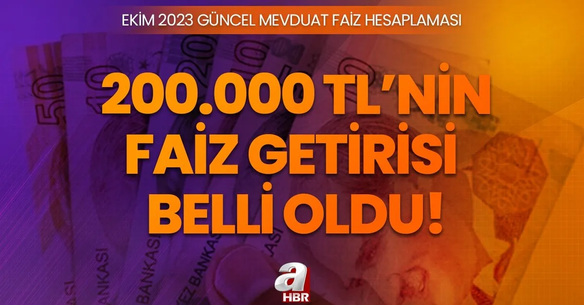 Bankaya Yatırılan 200.000 liranın faiz getirisi belli oldu! Paranız çifter çifter artacak! Nakit birikimleri güvenli bir şekilde değerlendirmek isteyenler için mevduat hesapları büyük önem taşıyor. İşte, Ekim 2023 mevduat faizi hesaplaması...