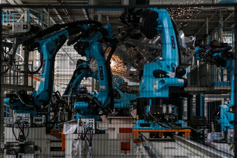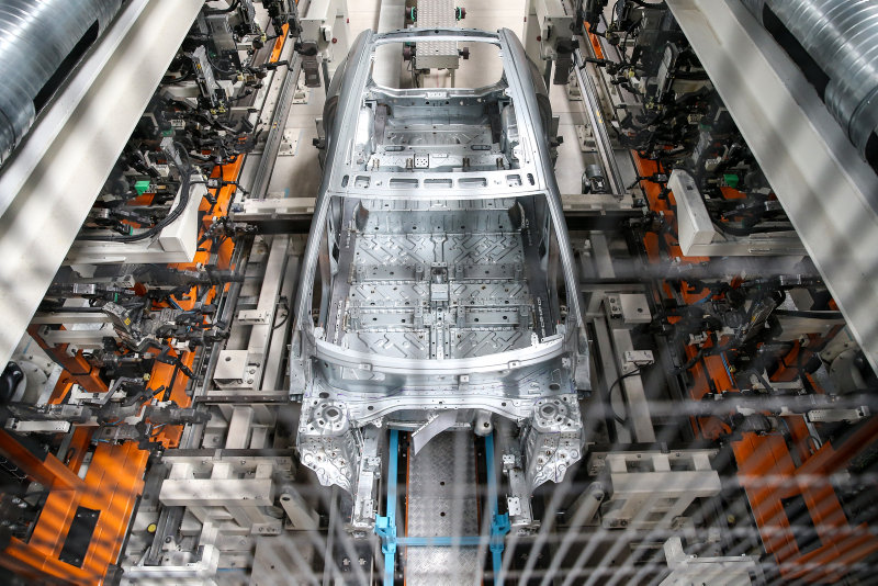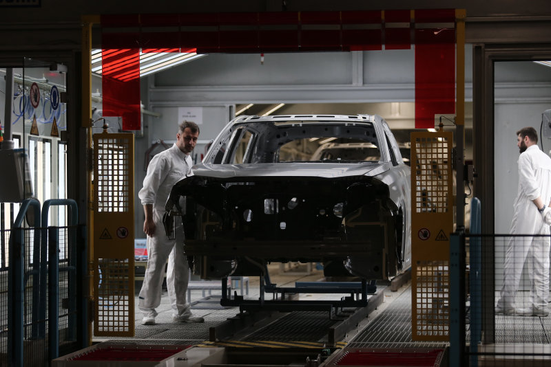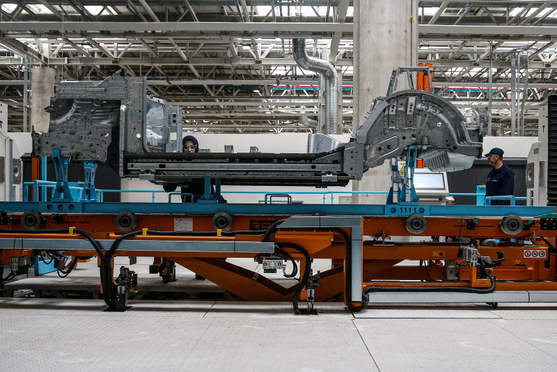 İlk olarak tesisteki gövde bölümünde bilgilendirme yapan Karakaş, "Şu an bulunduğumuz birim, bizim gövde birimimiz. Üretim açısından baktığınızda gövde birimimiz var. Buradan çıkan araçların girdiği boyahane birimimiz var. Oradan da çıkıp montaj birimine gönderiyoruz araçları. Şu an içinde bulunduğumuz gövde birimimiz, 50 bin metrekare alan üzerine kurulmuş olan, içerisinde 209 robotun kullanıldığı ve robot kullanım oranının yüzde 90 seviyesinde olduğu bir birim.