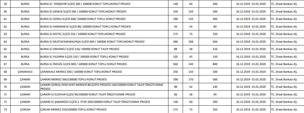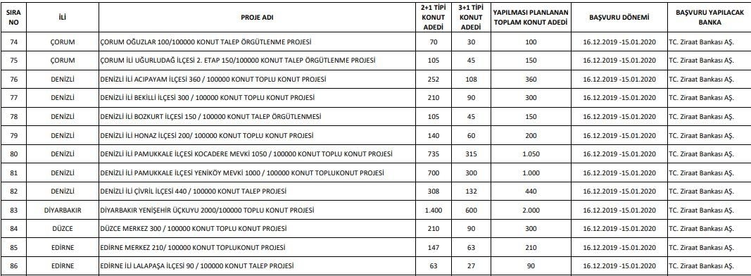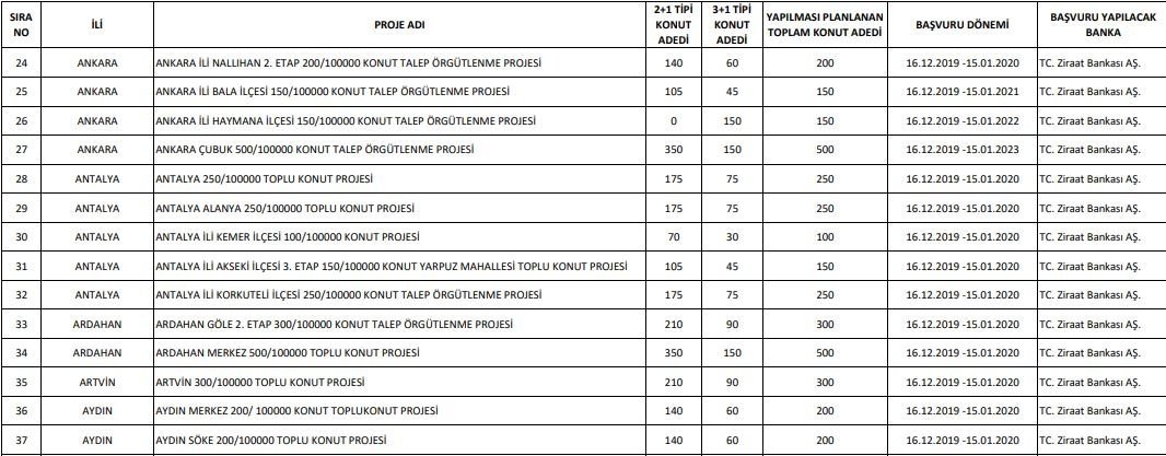 TOKİ 100 bin sosyal konut projesine başvurular 16 Aralık 2019 - 15 Ocak 2020 tarihleri arasında T.C. Ziraat Bankası A.Ş.'nin Proje ilinde bulunan yetkili şubeleri aracılığı ile başvuru yapılabiliyor.