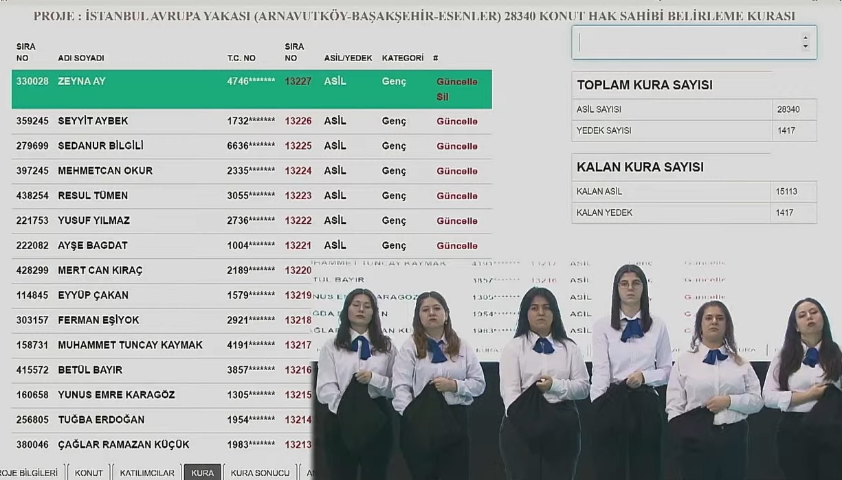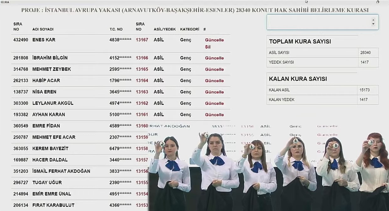 Arnavutköy, Başakşehir, Esenler ilçelerinde inşa edilecek 28 bin 340 konut için hak sahibi belirleme kurası ise 1 Nisan'da başladı ve 19 Nisan 2023 tarihinde sona erecek.