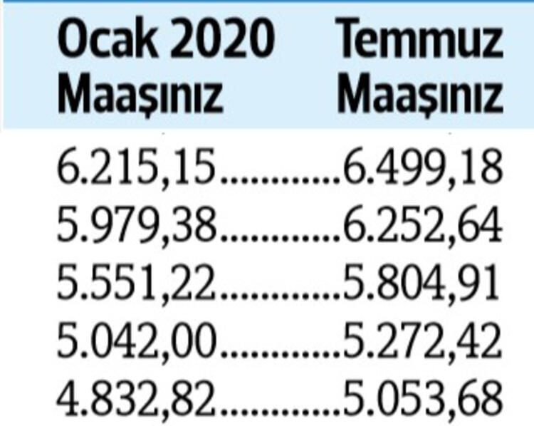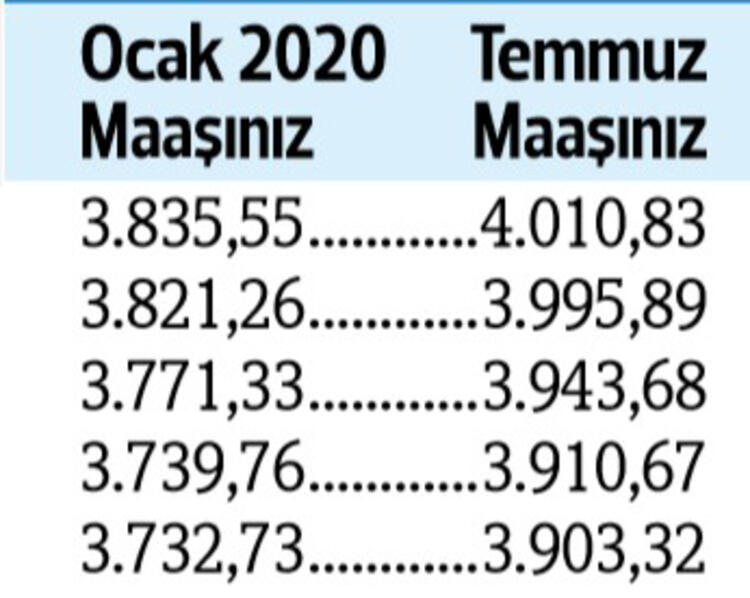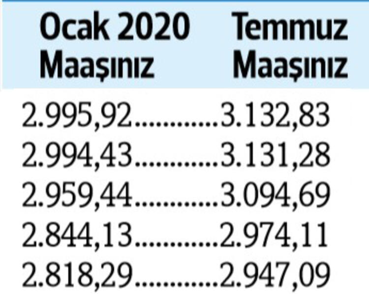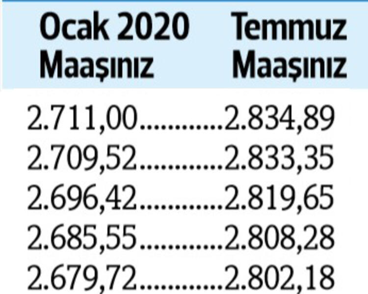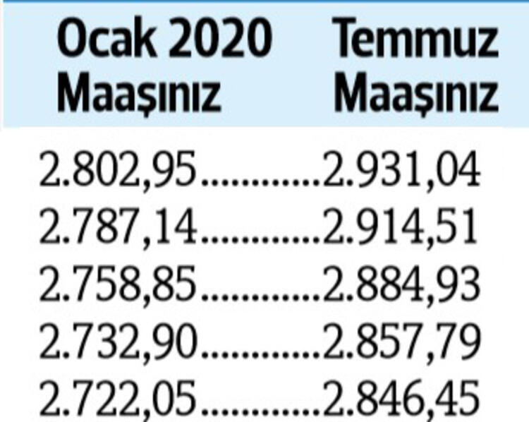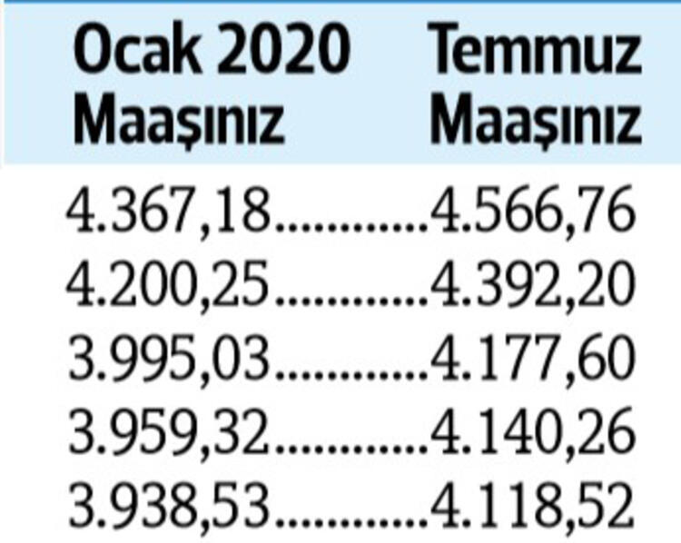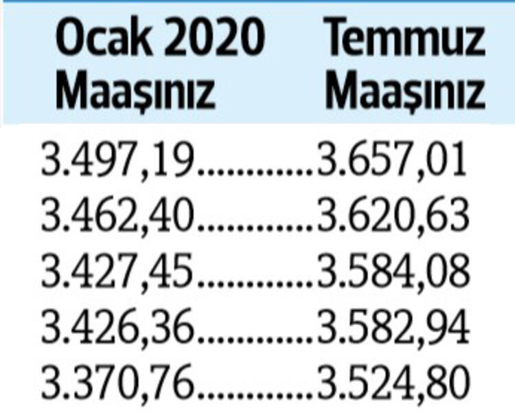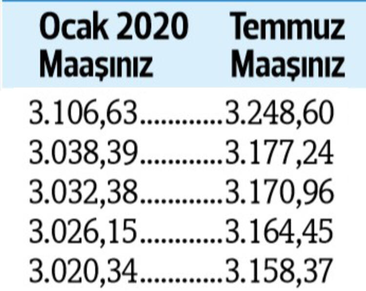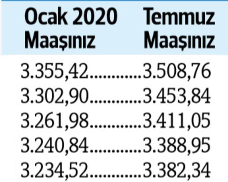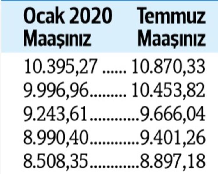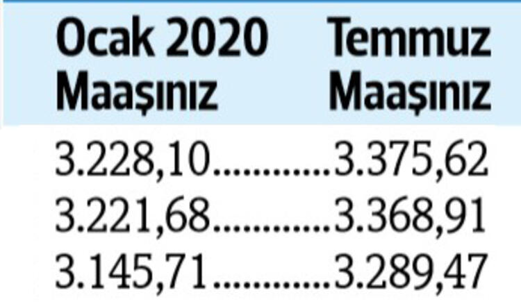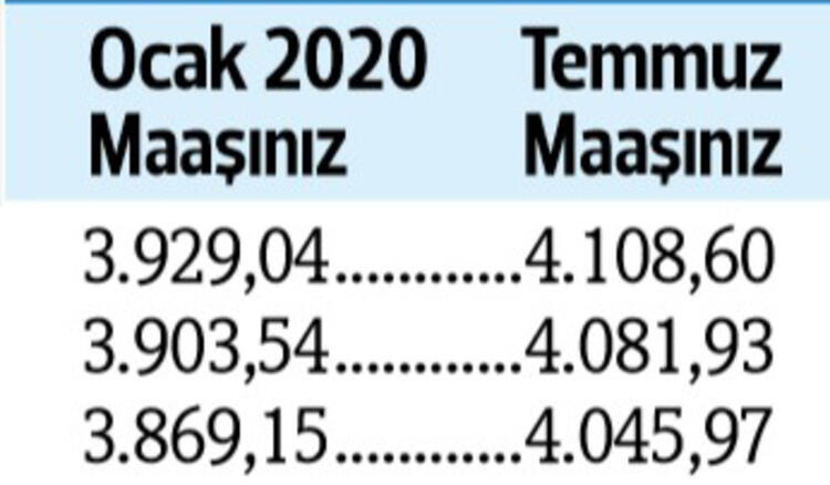 Tabii son durum haziran ayı enflasyonu ile birlikte netlik kazanacak. Son yapılan toplu sözleşmeye göre görevdeki memurlar ve emeklileri, bu yılın temmuz ayında maaşlarını yüzde 4 zamlı alacak.