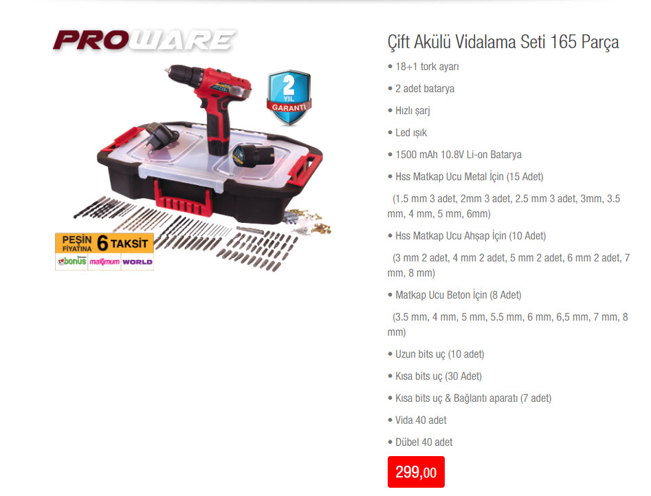 Çift Akülü Vidalama Seti 165 Parça