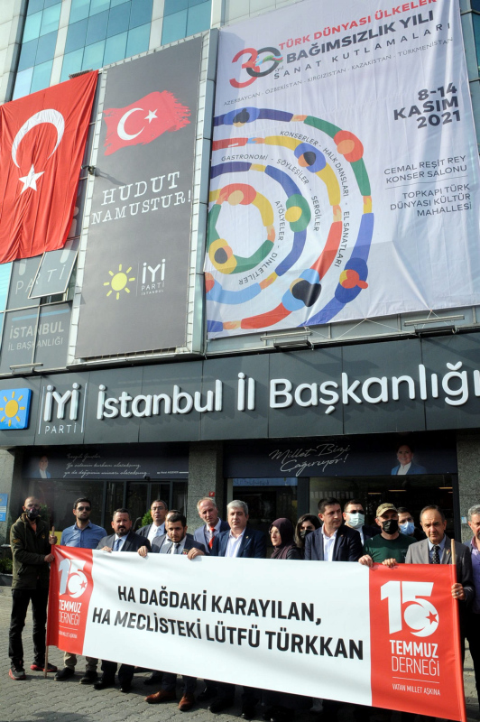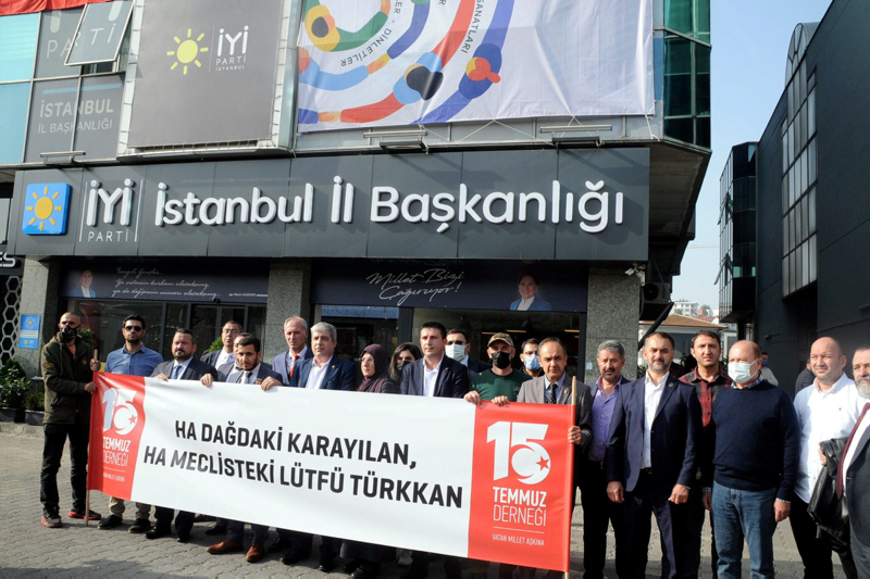Bingöl'de şehit ağabeyine küfür eden İYİ Parti Grup Başkanvekili ve Kocaeli Milletvekili Lütfü Türkkan'a tepkiler giderek büyüyor. 15 Temmuz Derneği üyeleri, İYİ Parti İstanbul İl Başkanlığı önünde İYİ Parti Grup Başkanvekili Lütfü Türkkan'ı protesto etti. İYİ Parti yönetimine Lütfü Türkkan'ın partiden ihraç edilmesi gerektiği iletildi. Protestoda, "Ha dağdaki Karayılan ha Meclis'teki Lütfü Türkkan" poster açıldı.