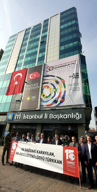 Bingöl'de yaşanan olayın ardından 15 Temmuz Derneği üyeleri bugün İYİ Parti İstanbul İl Başkanlığı önünde toplandı.