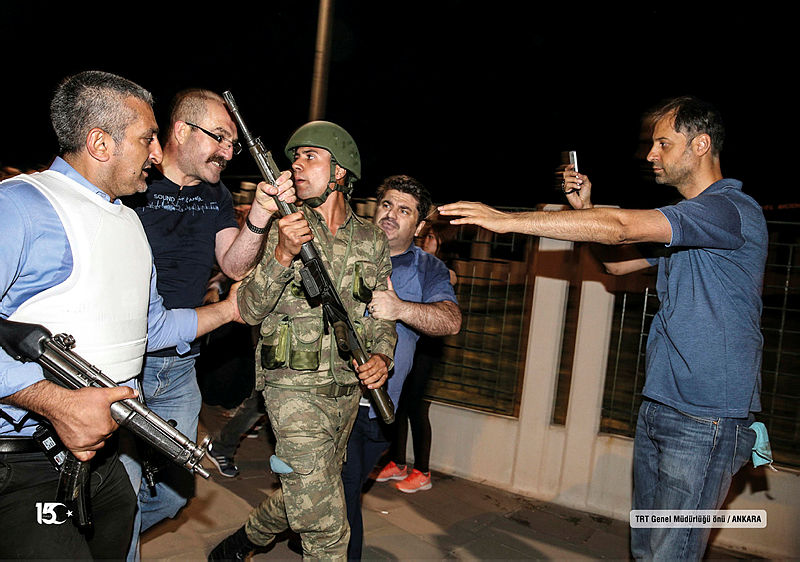 Derken; TRT binasını bastı darbeci asker, Darbe bildirisini okuyor, esir spiker, Tam ülke elden gitti gidiyor, Başkomutan, halkı meydanlara davet ediyor.