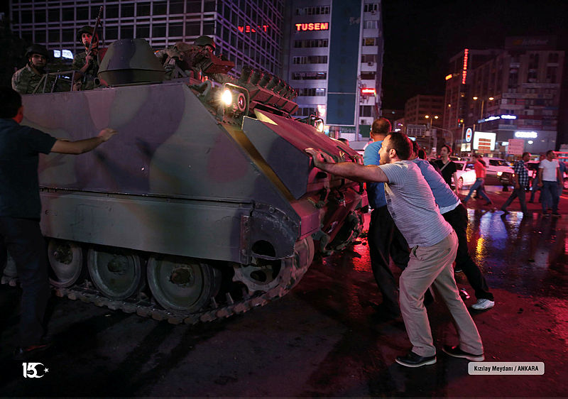 15 Temmuz 2016, saat 22 sularında, Bir avuç satılmış köpek, boğaziçi semalarında, Elinde benim tüfeğim,binmiş benim tankıma, Üstüne yürüyor,ateş ediyor benim halkıma.