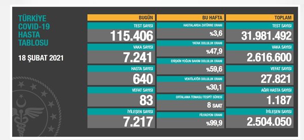 18 ŞUBAT CORONA VİRÜSÜ TABLOSU AÇIKLANIYOR!