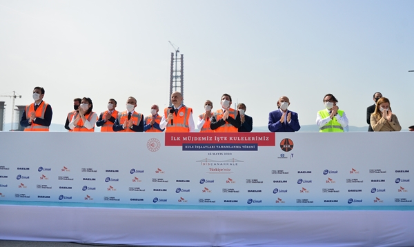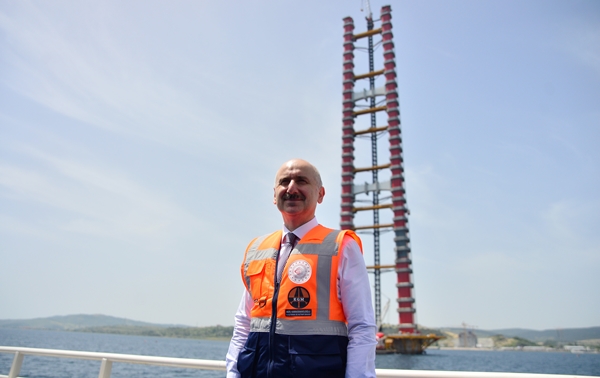 Törende konuşan Karaismailoğlu, Türkiye'nin ulaşım altyapısında tarihi günlerden birini daha yaşadığını, Cumhuriyet tarihinin en önemli projelerinden birini yaptıklarını söyledi. Köprünün 318 metrelik dünya birincisi kulelerinin son çelik blok montajını yaptıklarını belirten Karaismailoğlu, şöyle devam etti: