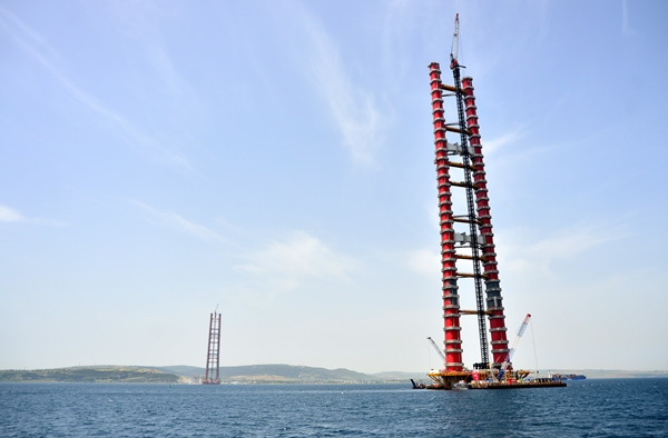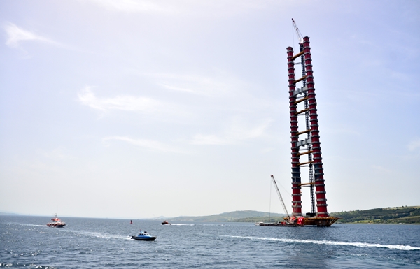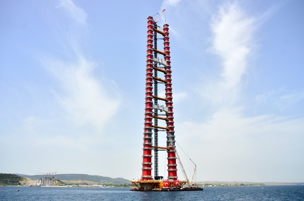 1915 Çanakkale Köprüsü'nün 318 metrelik çelik kuleleri tamamlandı
