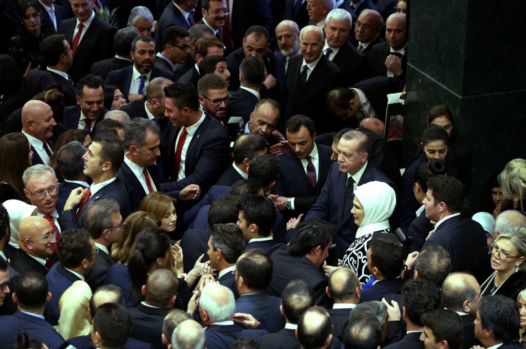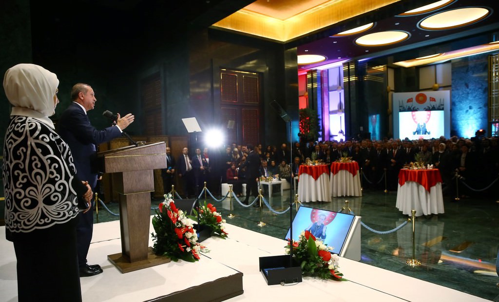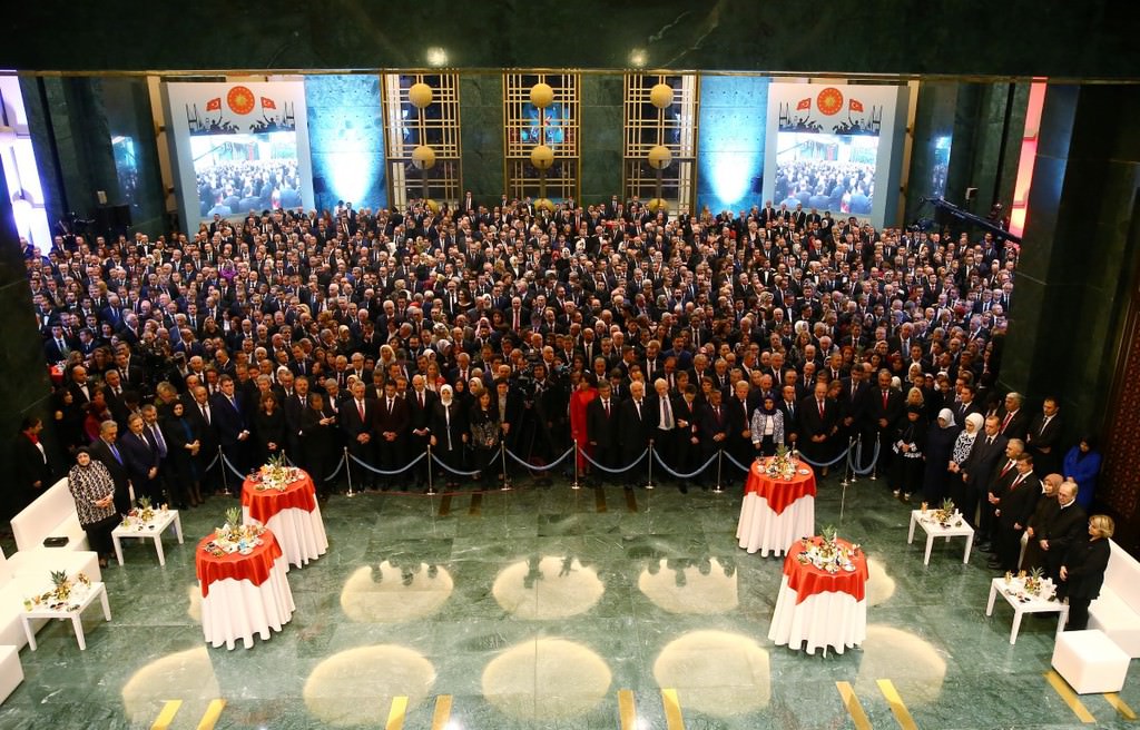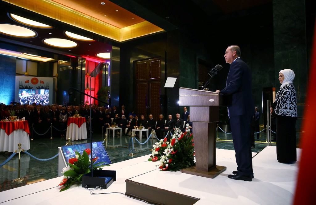 Cumhurbaşkanı R. Tayyip Erdoğan ve eşi Emine Erdoğan'ın 29 Ekim Cumhuriyet Bayramı nedeniyle Cumhurbaşkanlığı Külliyesi'nde verdikleri resepsiyonda renkli anlar yaşandı