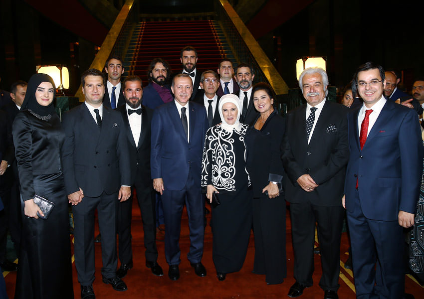 Cumhurbaşkanı Erdoğan, yapımcı Polat Yağcı'nın 'Müzik sektörünün duayeni' diye tanıttığı Hüseyin Emre'ye yaşını sordu, ardından da, "Hüseyin Bey, bıyık bırakırsanız daha da genç gösterirsiniz. Bıyık erkeği gençleştirir" dedi.