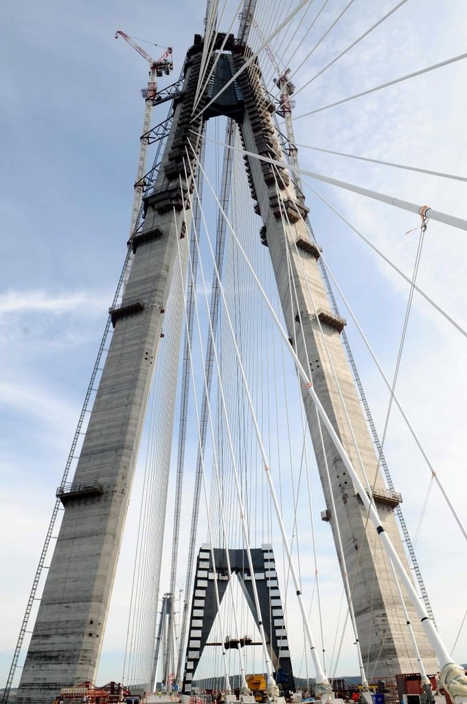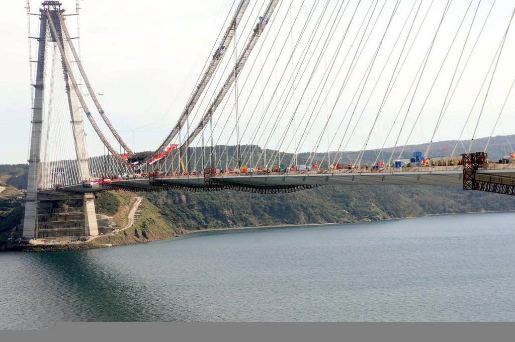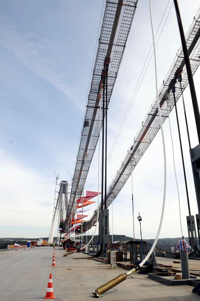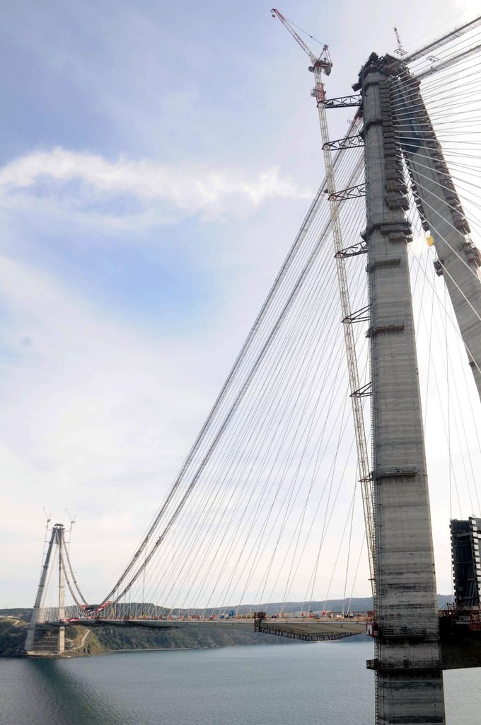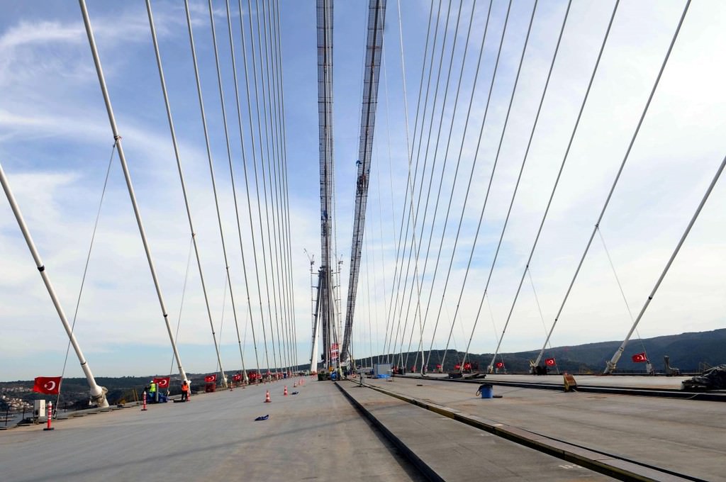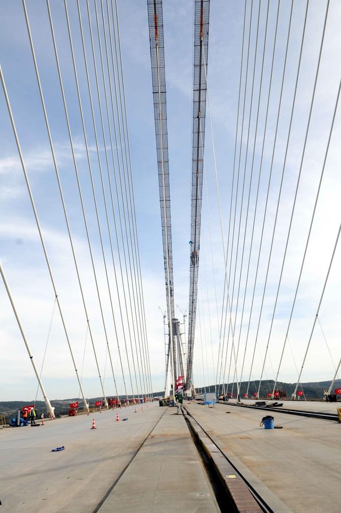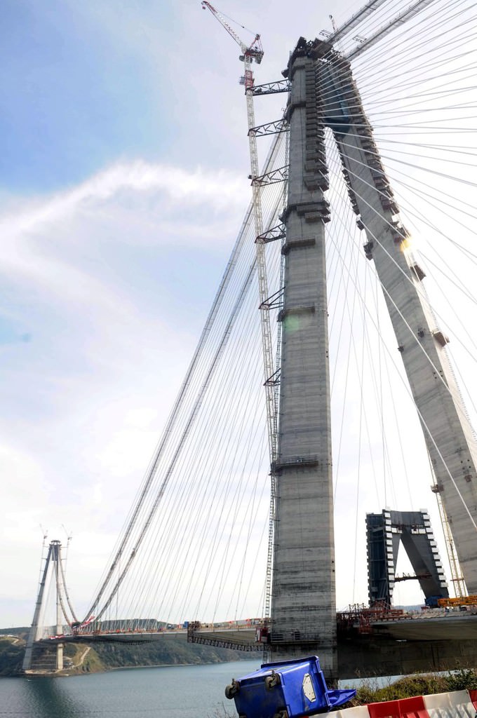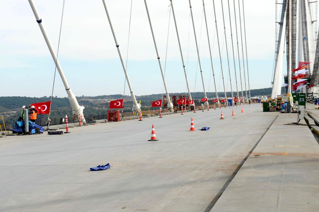 İstanbul'un üçüncü köprüsü, Yavuz Sultan Selim Köprüsü'nün son tabliyesi yerleştirildi. Köprünün girişinde tören öncesinde alınan güvenlik önlemleri dikkat çekti.