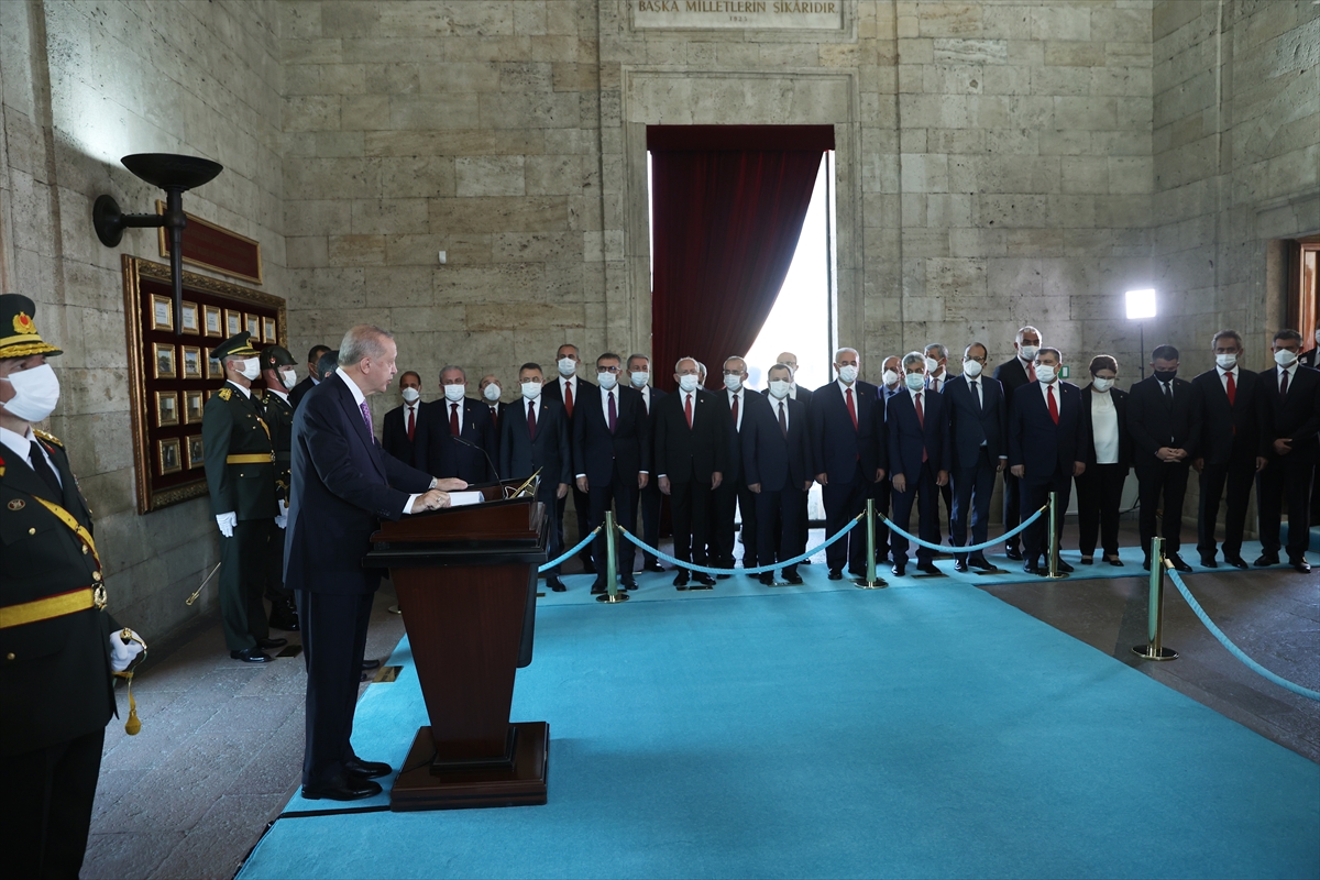 Başkan Recep Tayyip Erdoğan başkanlığındaki devlet erkanı, 30 Ağustos Zafer Bayramı ve Türk Silahlı Kuvvetleri Günü dolayısıyla Anıtkabir'e ziyarette bulundu.