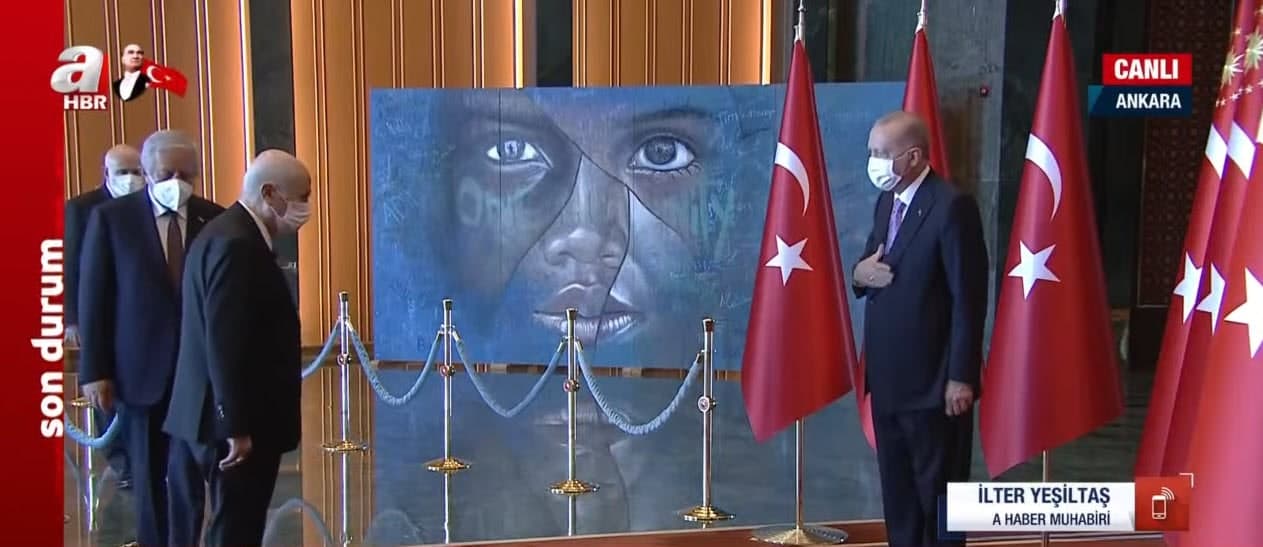 Başkan Erdoğan başkanlığındaki kortejde, TBMM Başkanı Mustafa Şentop, Cumhurbaşkanı Yardımcısı Fuat Oktay, CHP Genel Başkanı Kemal Kılıçdaroğlu, Cumhurbaşkanlığı Kabinesi üyeleri, MHP Genel Başkanı Devlet Bahçeli, İYİ Parti Genel Başkanı Meral Akşener, yüksek yargı organlarının başkanları, komutanlar, siyasi partilerin temsilcileri, bürokratlar ve diğer devlet erkanı yer aldı.