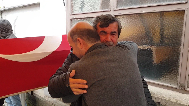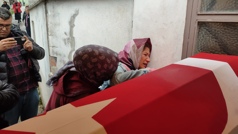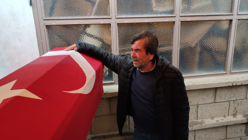 Emekli madenci İsmail Yıldız, 24 Ekim'de 39 yaşına girecek olan oğlunun Türk bayrağına sarılı tabutu başında gözyaşı döktü. 19 yıl önce emekli olan İsmail Yıldız'ın ilçenin Kaleşah Mahallesi'ndeki evine Türk bayrağı asıldı.