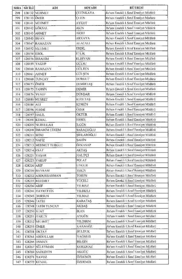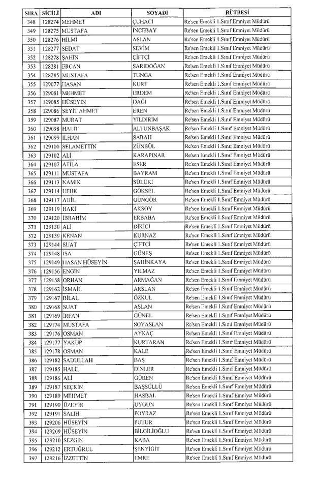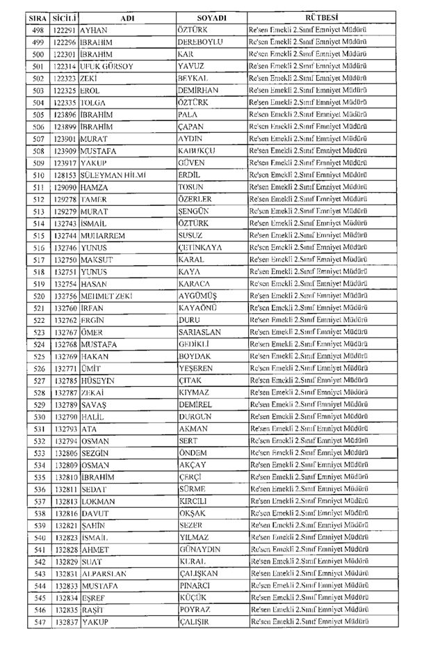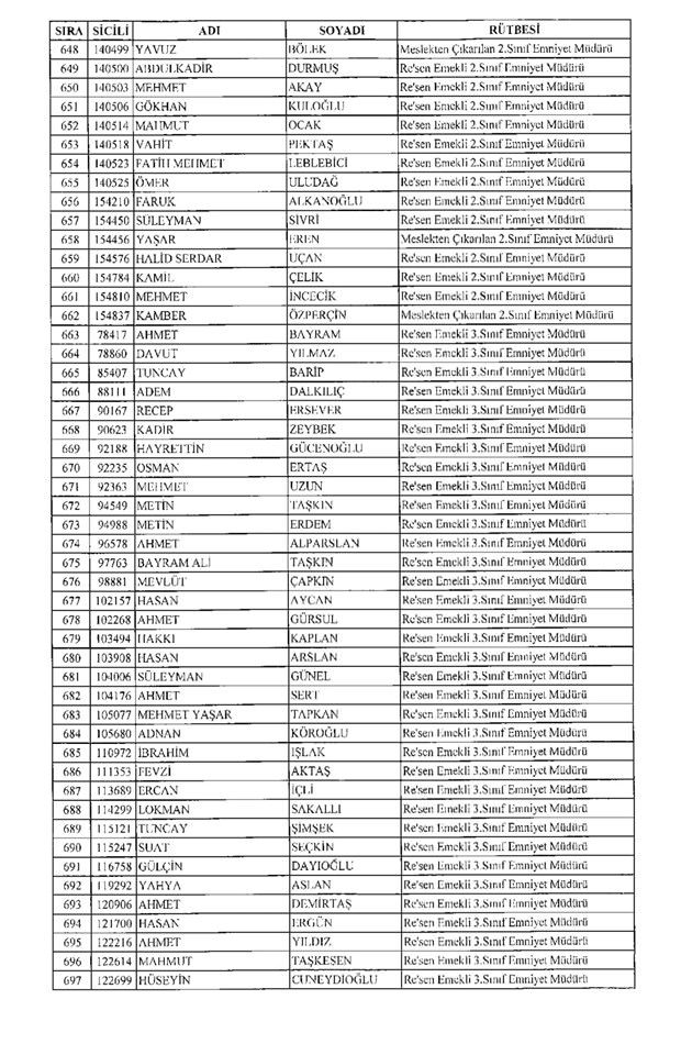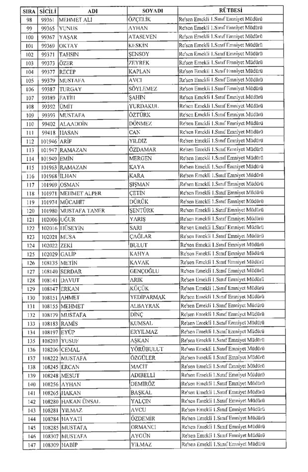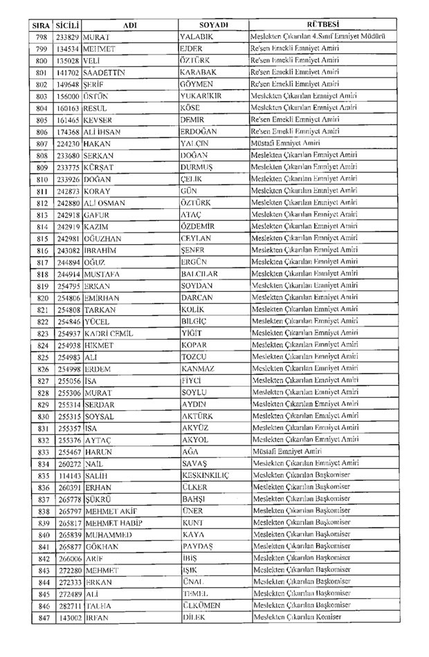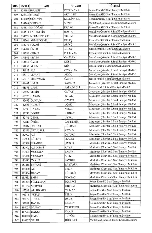 675 sayılı KHK ile rütbesi alınan emniyet teşkilatı mensuplarının tam listesi