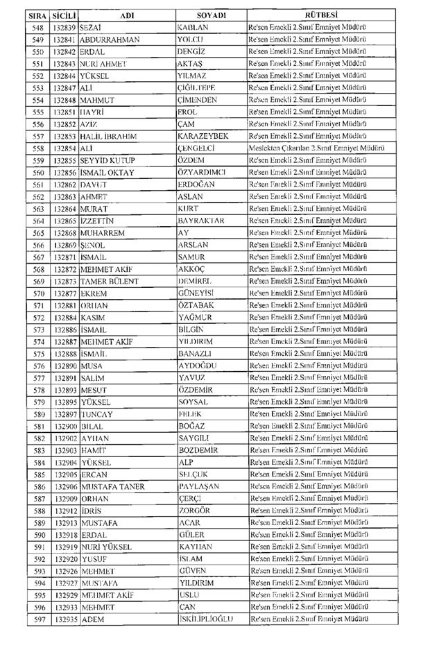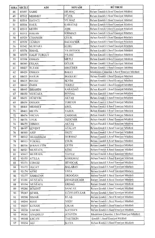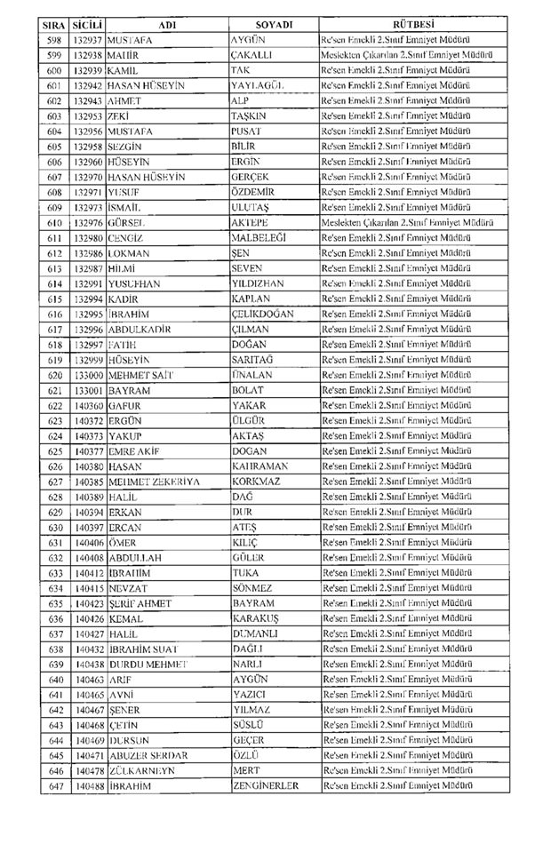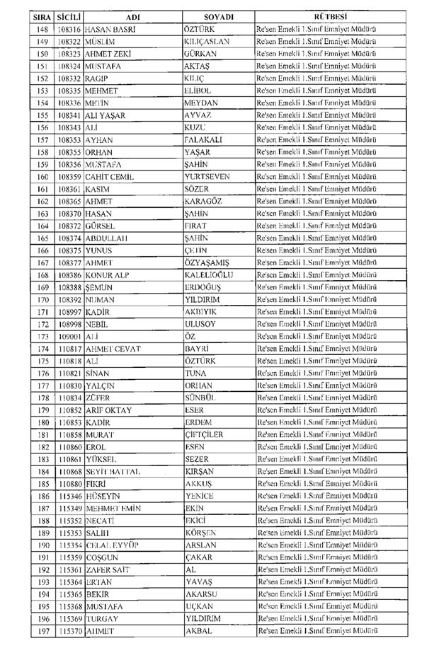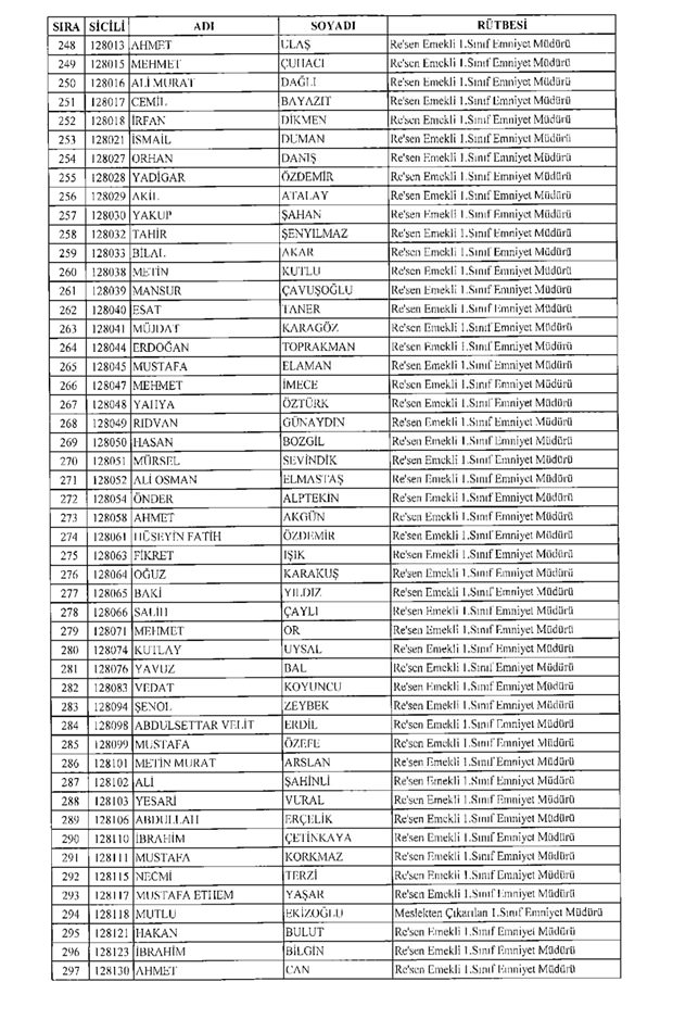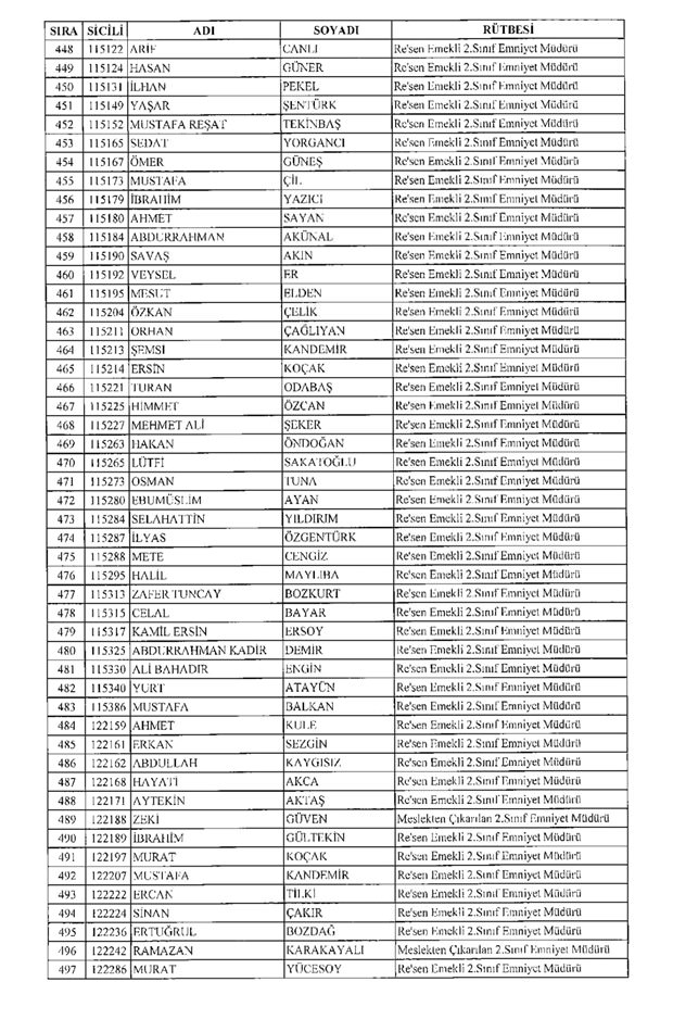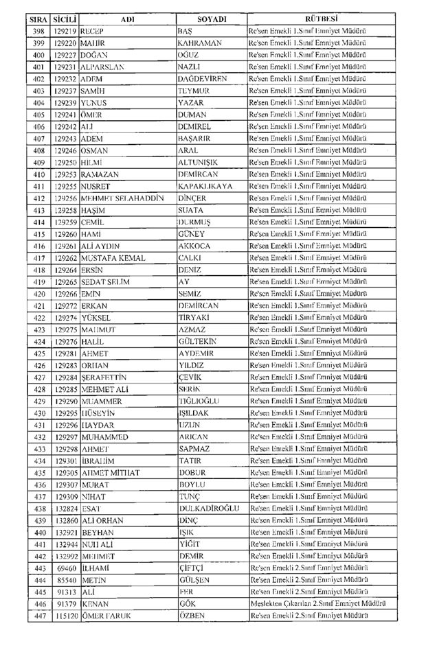 675 sayılı KHK ile rütbesi alınan emniyet teşkilatı mensuplarının tam listesi