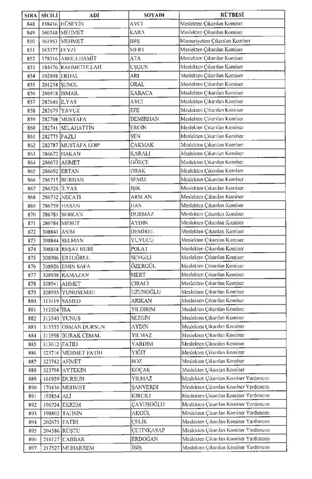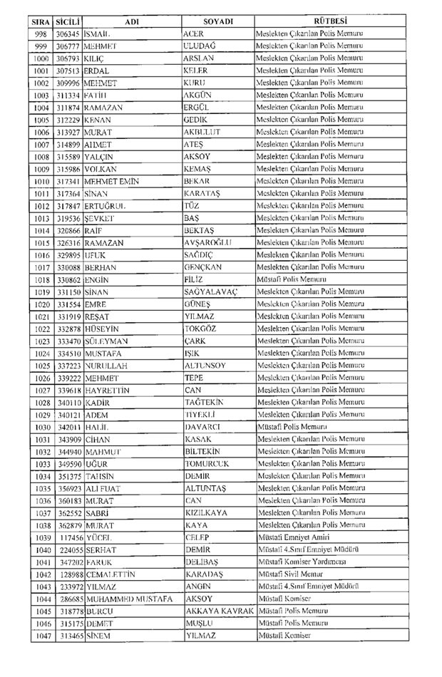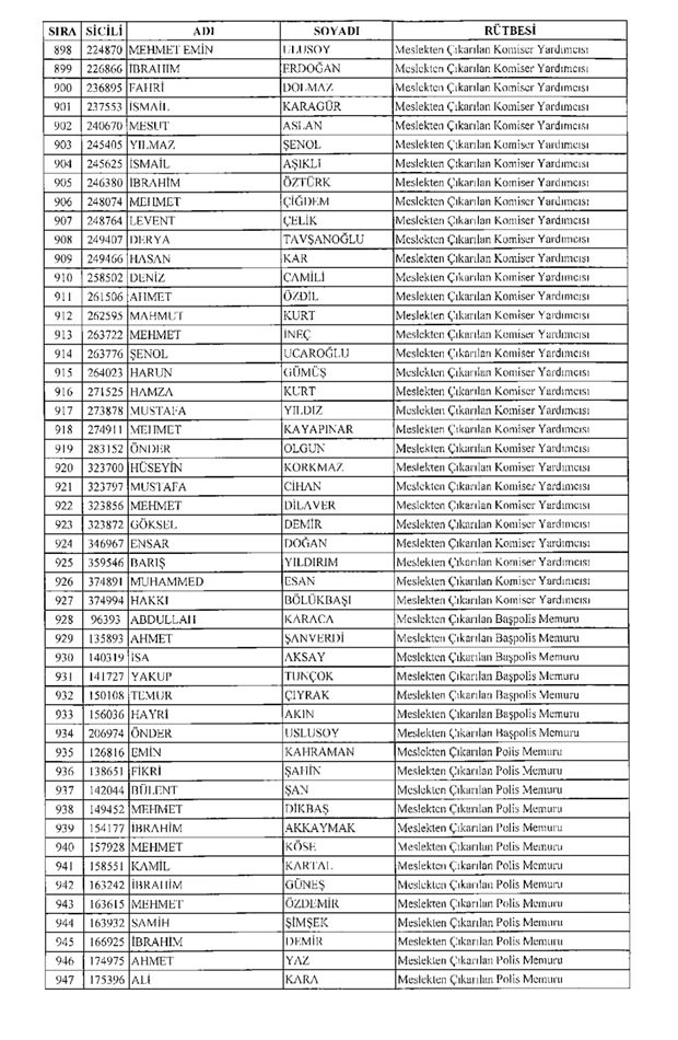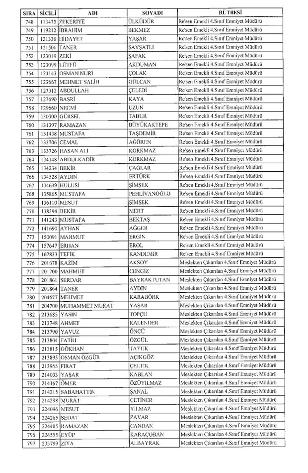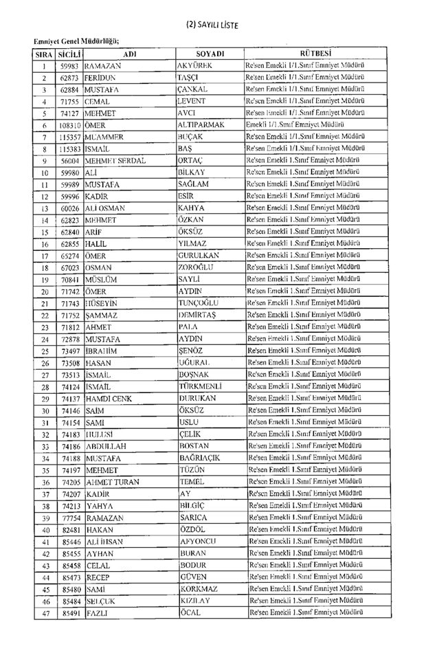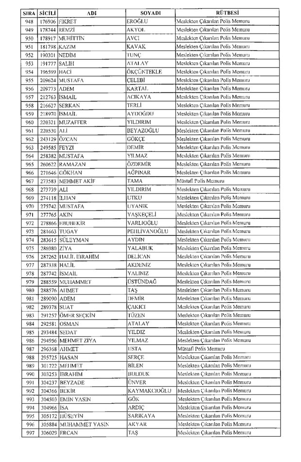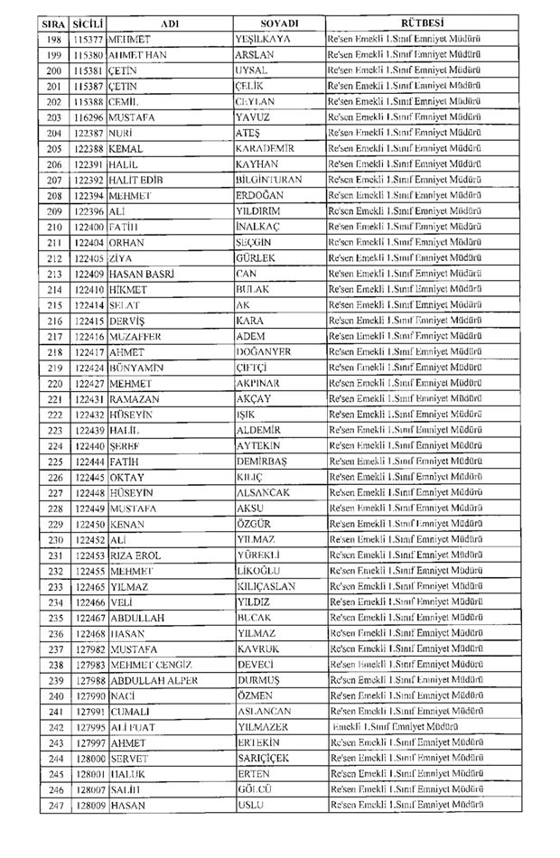 675 sayılı KHK ile rütbesi alınan emniyet teşkilatı mensuplarının tam listesi