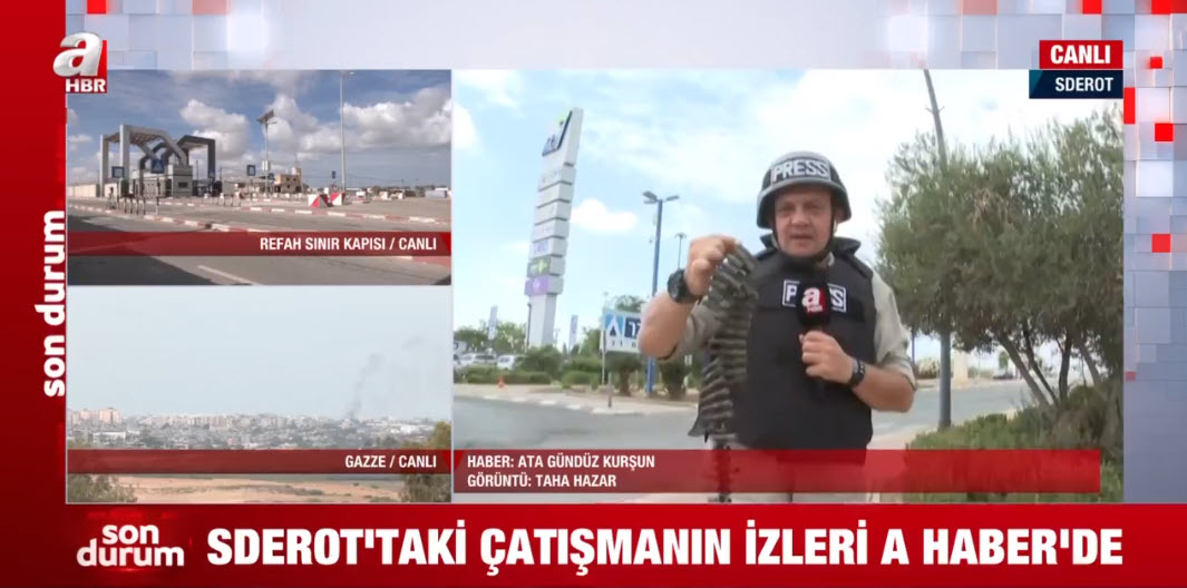 Son dakika haberi... Gazze'de insanlık krizi büyüyor. Katliamcı İsrail Gazze'ye bombalar yağdırıyor, siviller katlediliyor. A Haber Programlar Müdürü Emine Kavasoğlu ve A Haber muhabiri Ata Gündüz Kurşun dünyanın gözünü çevirdiği sıcak bölgeden son dakika gelişmeleri aktarmaya devam ediyor. Hamas'ın Aşkelon'a fırlattığı roketleri ve Gazze sınırındaki yüzlerce tankı A Haber görüntüledi.