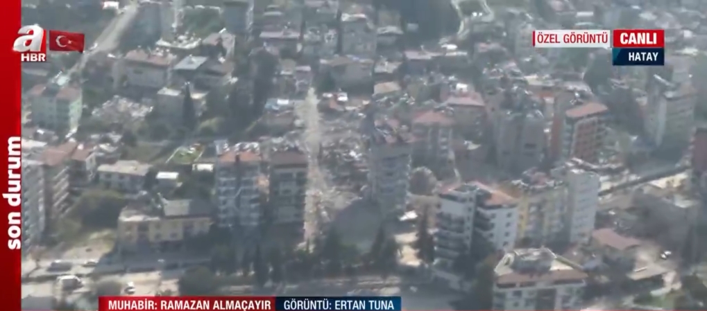 Kahramanmaraş merkezli yaşanan 2 büyük depremden en çok etkilenen yerlerden biri de Hatay oldu. Medeniyetler şehri Hatay'da 6 Şubat'tan geriye enkaz yığını kaldı. A Haber polis helikopterinde Hatay'daki yıkım havadan görüntüledi. Gelişmeleri A Haber İstihbarat Şefi Ramazan Almaçayır aktardı.