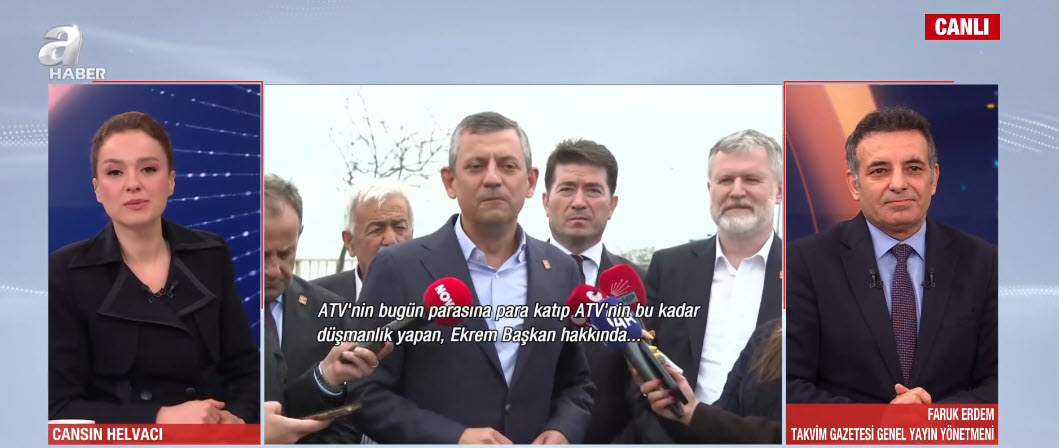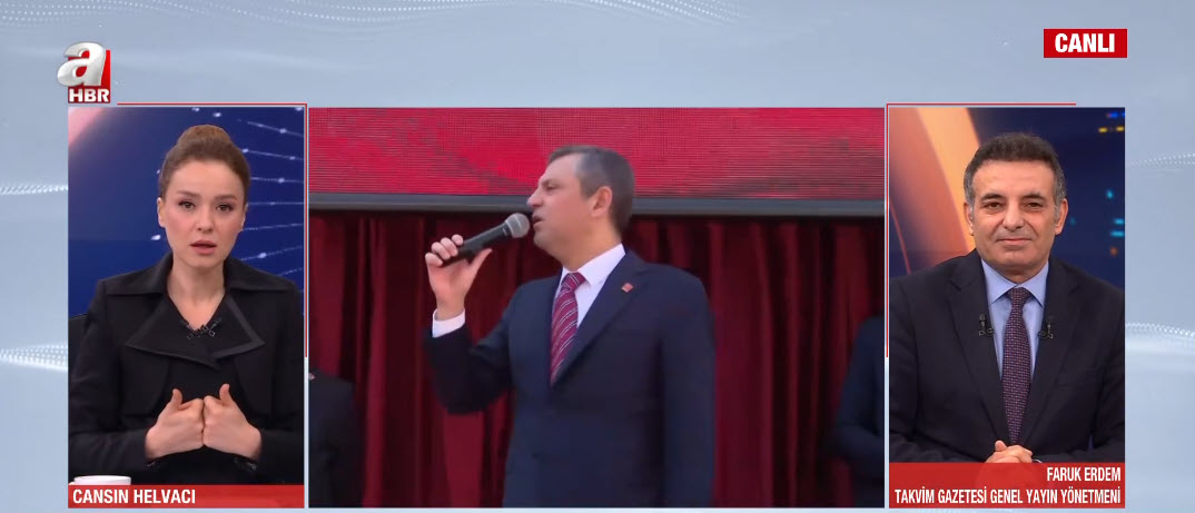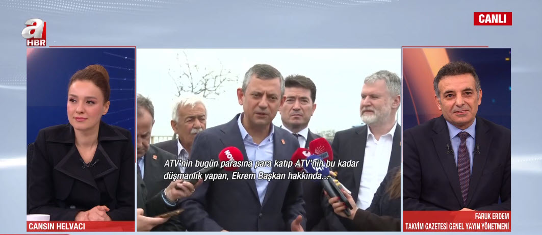 A Haber spikeri Cansın Helvacı canlı yayında A Haber ve ATV'yi de hedef alan Özgür Özel'e seslendi.