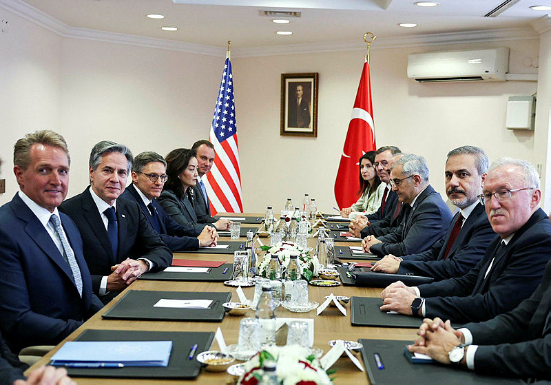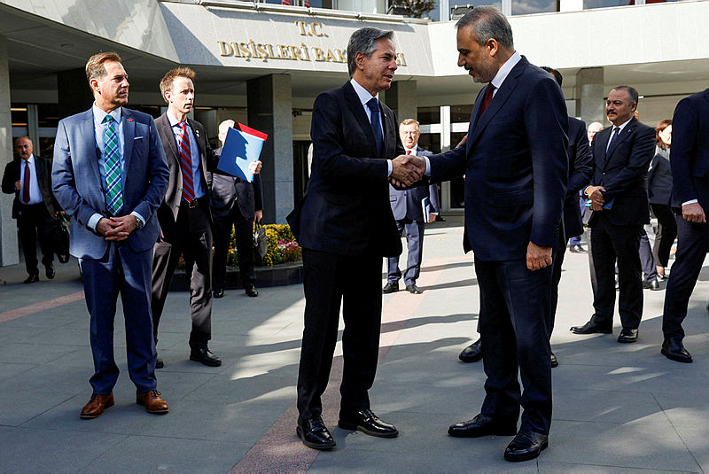 ABD, İsrail'in 7 Ekim'den bu yana Gazze'de yaptığı katliama arka çıkarken, Filistin'de yaşanan insanlık dramına ise sessiz kaldı. ABD Dışişleri Bakanı Antony Blinken, 1 aylık süreçte 3 kez İsrail'i ziyaret etti. Bu gece yarısı Türkiye'ye gelen Blinken, ziyareti sırasında şok üstüne şok yaşadı. Havalimanında sadece vali yardımcısı tarafından karşılanan Blinken'in yüzü asıldı. Dışişleri Bakanı Hakan Fidan ile görüşmesinde de Fidan'ın yaptığı hamle ile adeta şoka girdi. İkilinin görüşmesinde masada bulunan Mescid-i Aksa detayı da dikkat çekti.