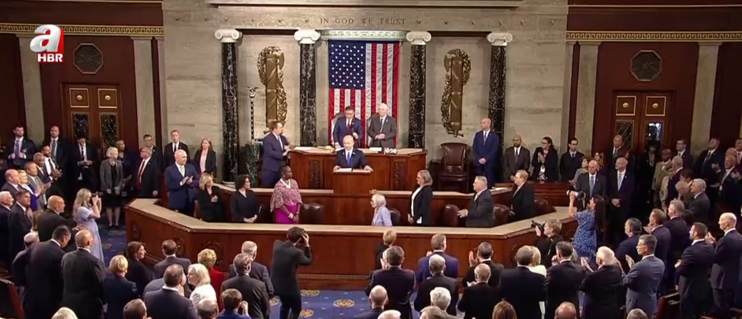 Gazze'de soykırım yapan katil İsrail'in Başbakanı Netanyahu onur konuğu olarak Amerika Birleşik Devletleri'ne kongresinde ağırlandı.