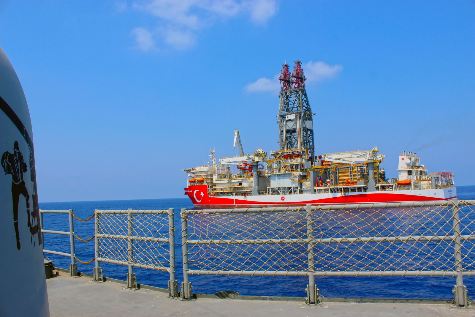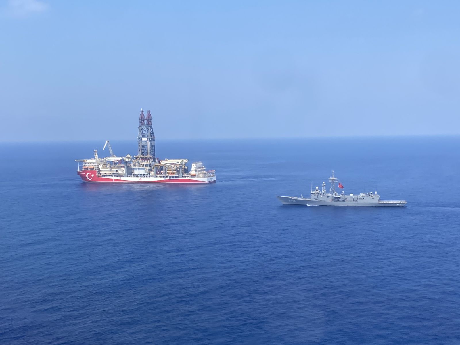 Başkan Recep Tayyip Erdoğan'ın katıldığı uğurlama töreni sonrası seyre çıkan Abdülhamid Han sondaj gemisine, Deniz Kuvvetlerine ait yüzer ve uçar unsurlar tarafından refakat sağlanıyor.