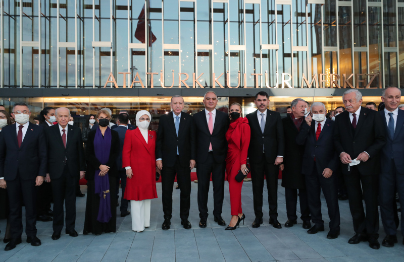 Başkan Recep Tayyip Erdoğan, 29 Ekim Cumhuriyet Bayramı'nda yeniden inşa edilen Atatürk Kültür Merkezi'nin (AKM) açılışını yaptı. Törene eşi Emine Erdoğan ile gelen Başkan Erdoğan'ı, Kültür ve Turizm Bakanı Mehmet Nuri Ersoy ile eşi kapıda karşıladı. Erdoğan, kurdeleyi keserek açılışı gerçekleştirdi. Protokol daha sonra ise bale ve opera salonuna geçti.