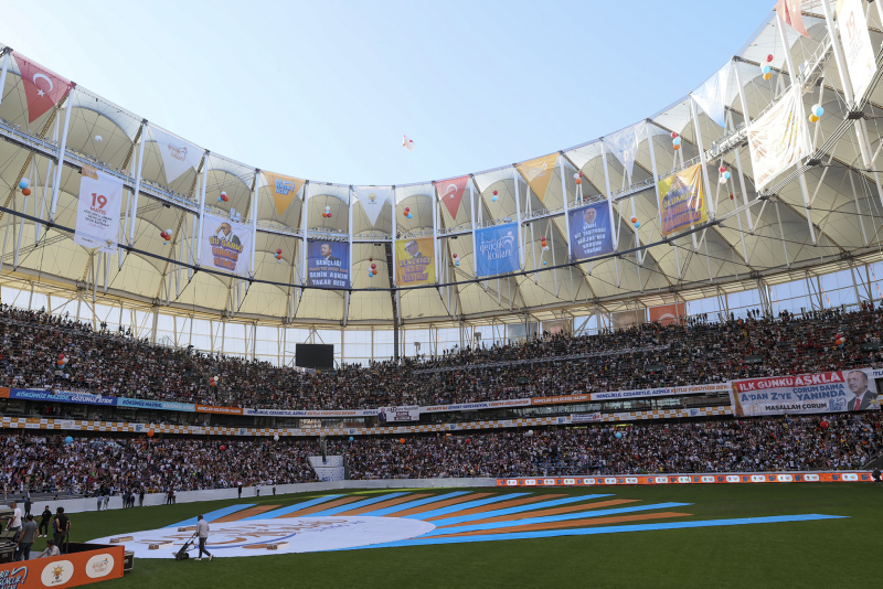 AK Parti Gençlik Kollarınca Yeni Adana Stadı'nda organize edilen etkinlik için yürütülen çalışmalar kapsamında, vatandaşlar saatler öncesinden alana gelmeye başladı.