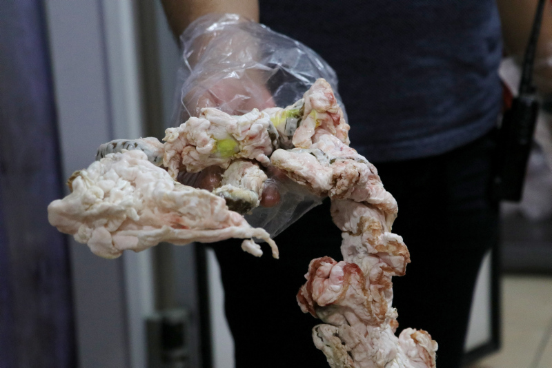 Adana Kasaplar Odası Başkanı Murat Saruhan Yağmur'un da katıldığı baskında ele geçirilen sakatat ve etlerin incelendiğindeyse kokmuş ve renklerinin sararmış oldukları görüldü.