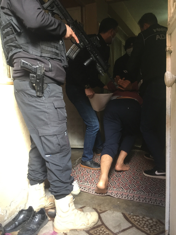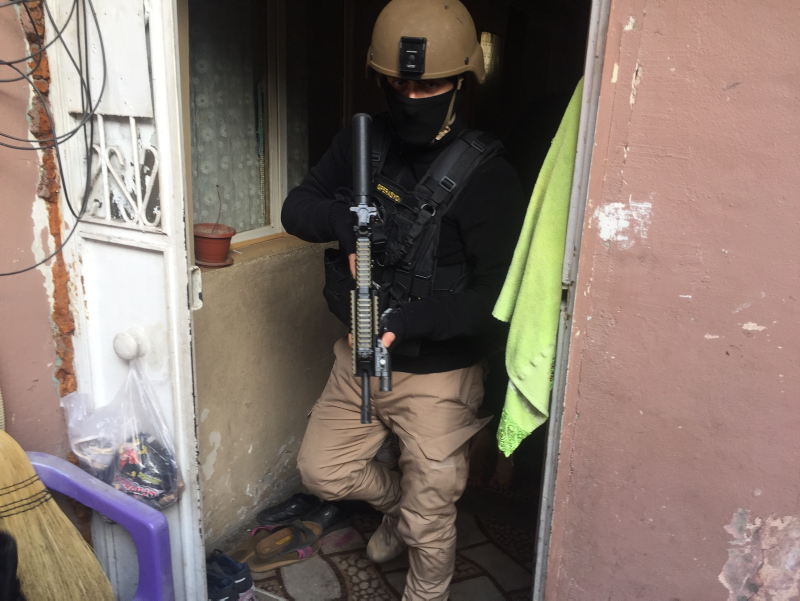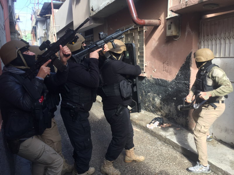 Ekipler, demir kapılarını koçbaşlarıyla açarak girdikleri evlerde şüphelileri etkisiz hale getirdi. Bu sırada operasyon kapsamında abluka altına alınan sokaklarda uzun namlulu silahlarla güvenlik önlemi alan polisler ise elleri tetikte bekledi.